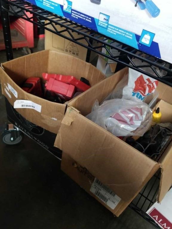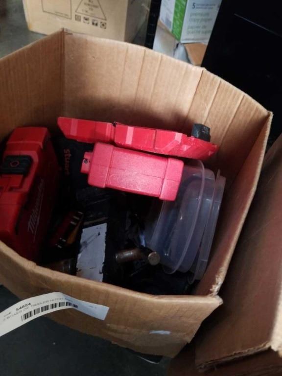 2 BOXES OF TRAILER HITCH AND MILWAUKEE BITS AND HARDWARE