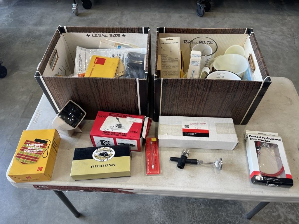 2 BOXES OF VINTAGE FILM DEVELOPMENT ITEMS