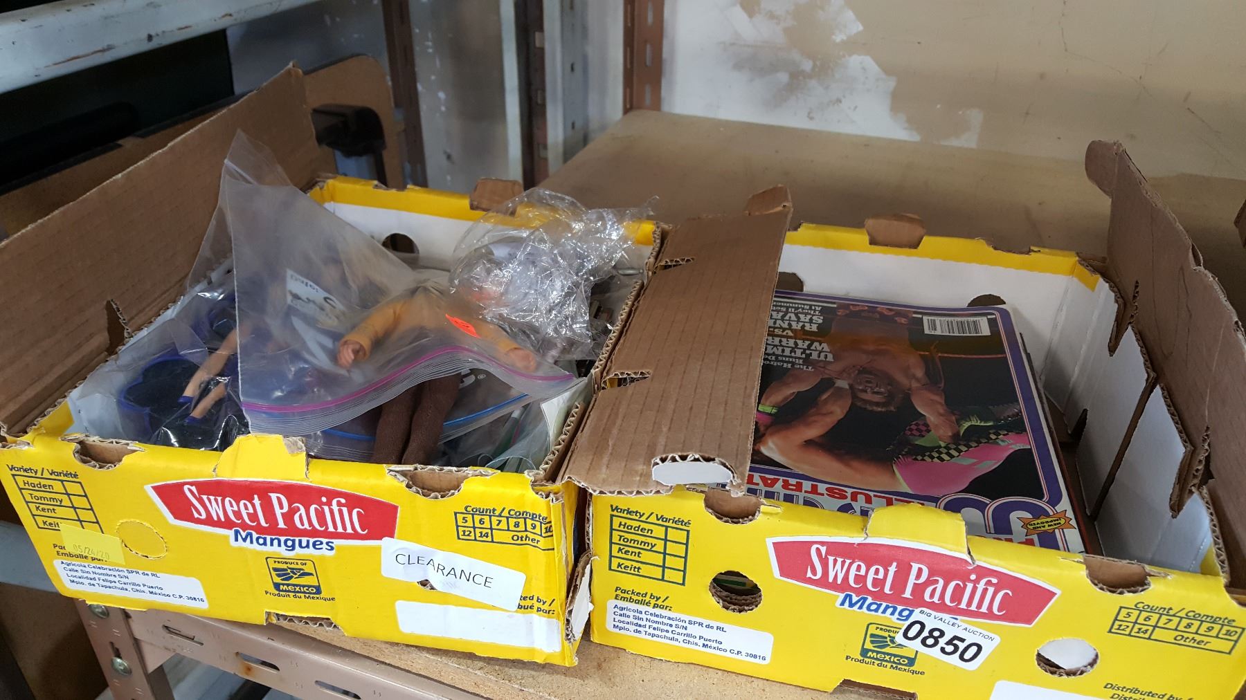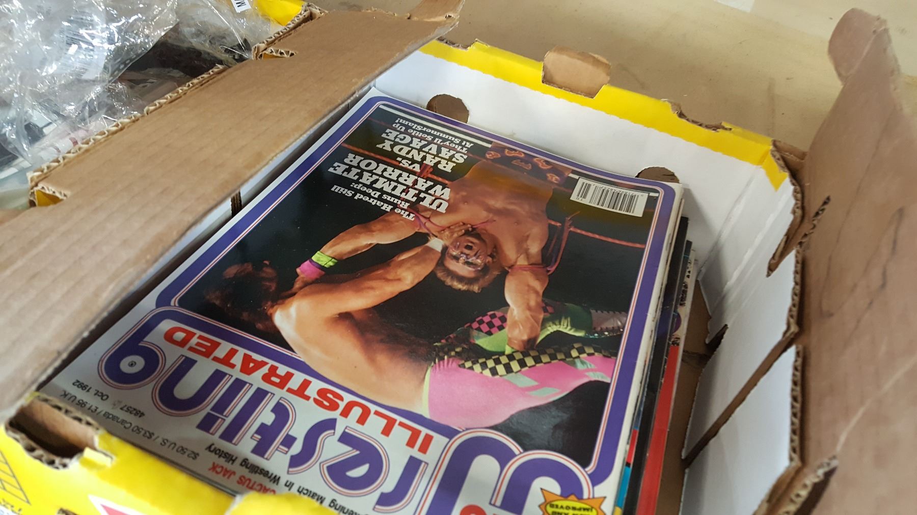 2 BOXES OF WRESTLING MAGAZINES AND TOYS