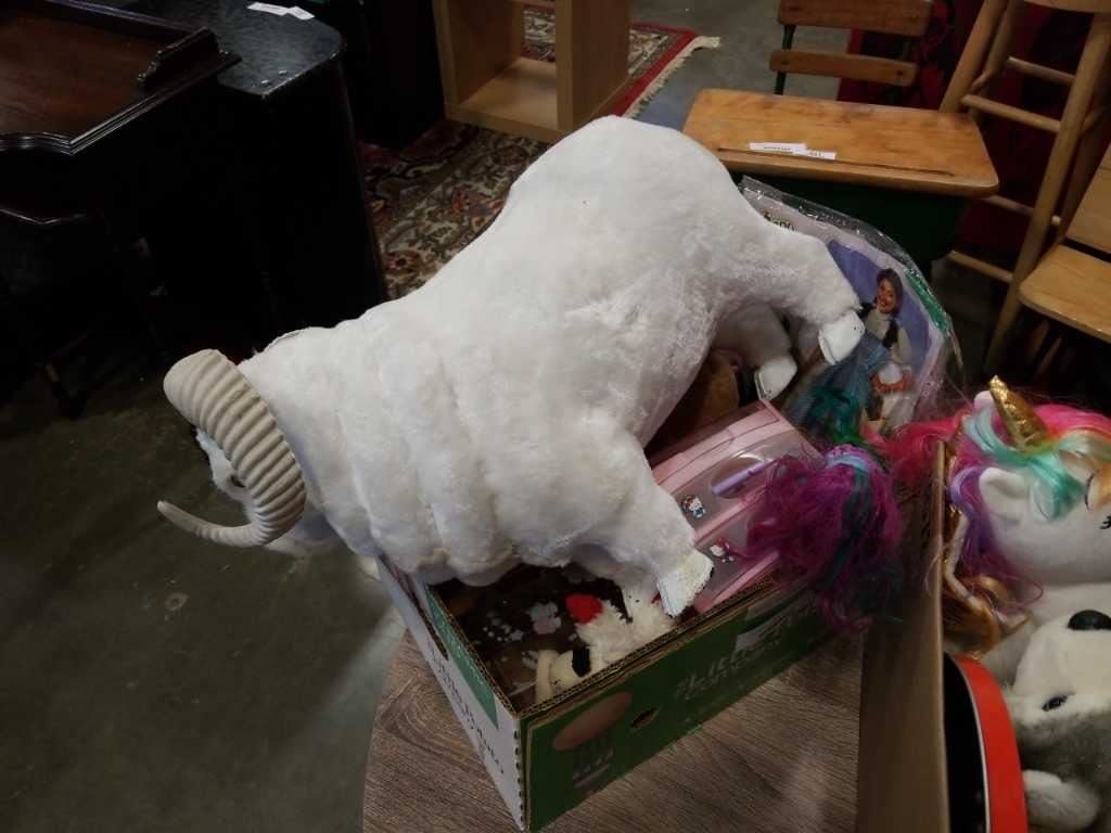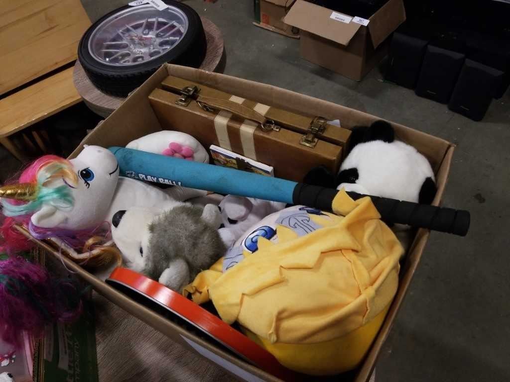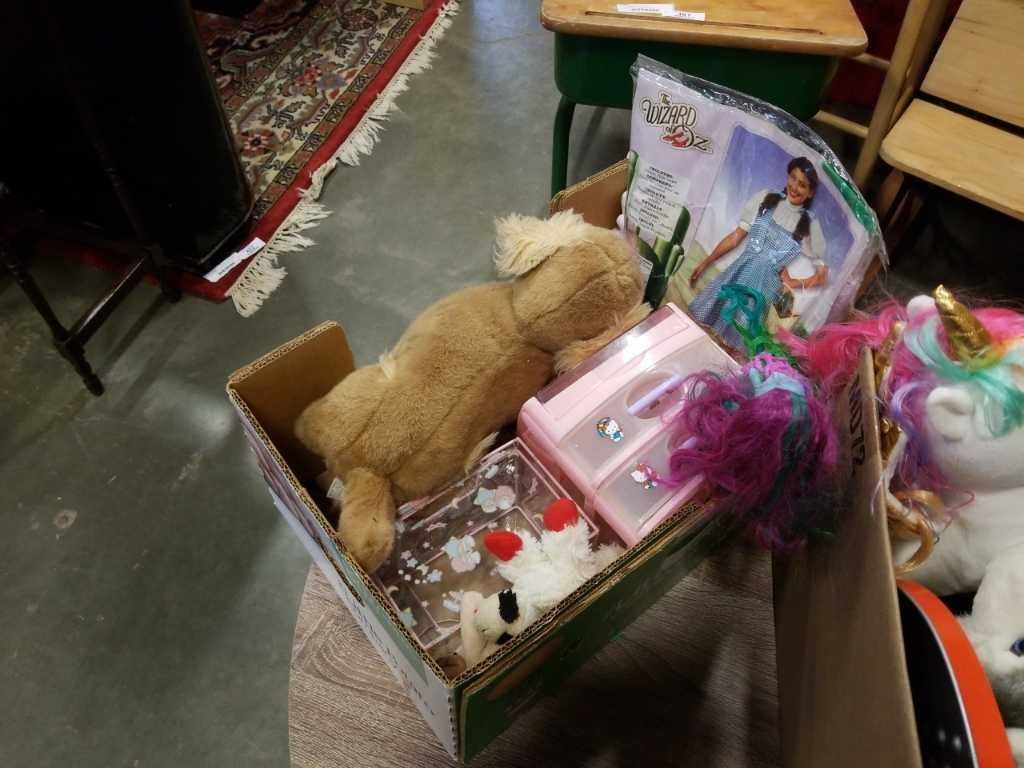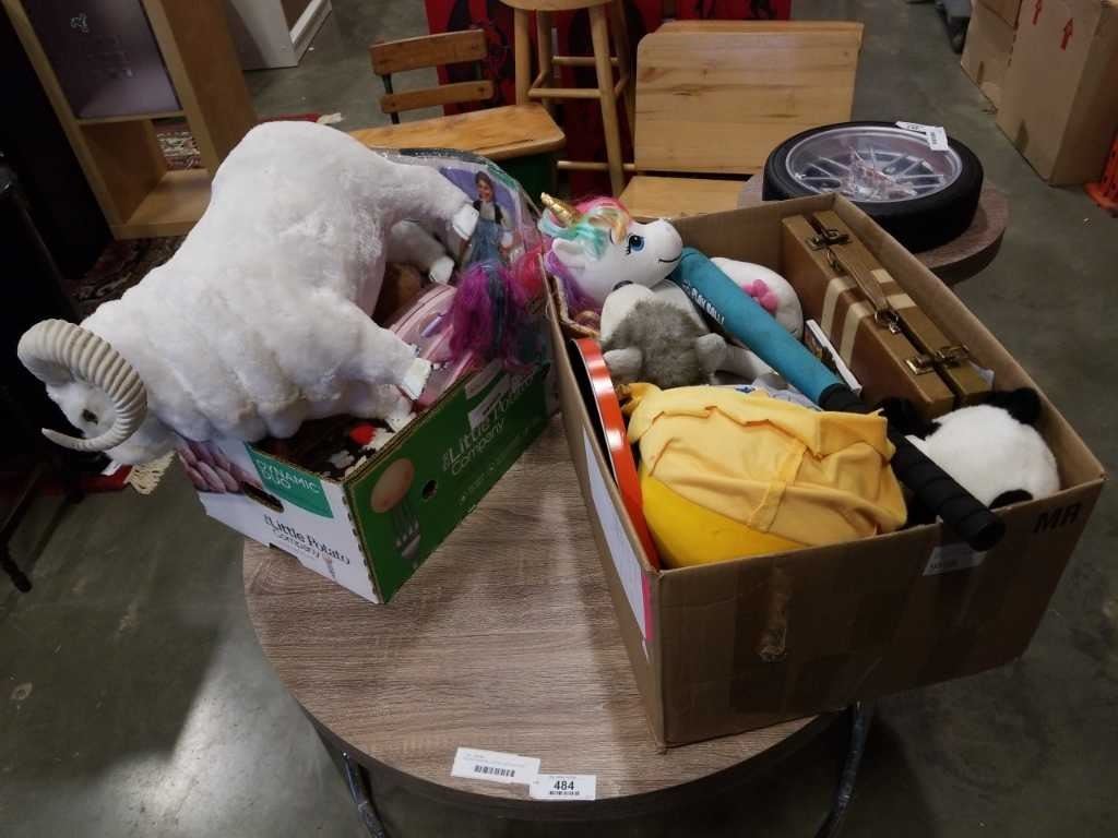 2 BOXES STUFFED ANIMALS AND KIDS TOYS