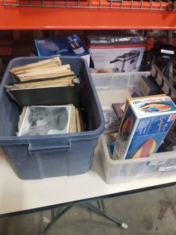 2 BOXES VINTAGE MAGAZINES, COLLECTABLES, METAL VASE