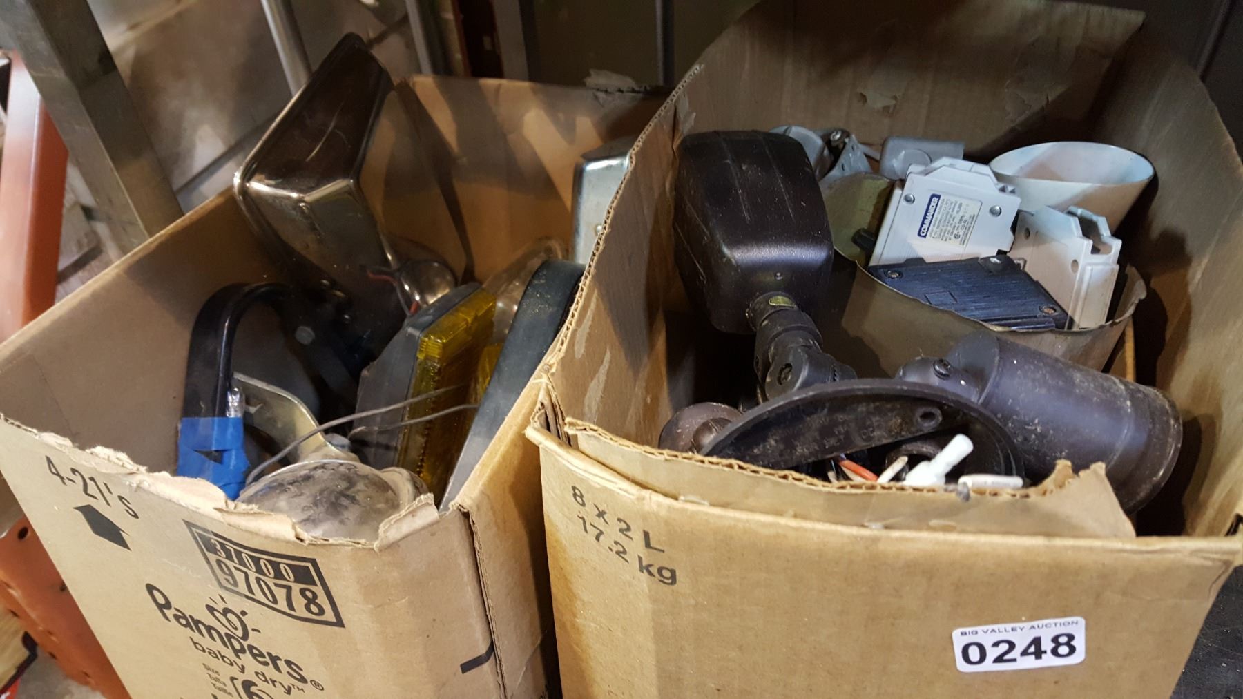 2 BOXES W/ AUTOMOTIVE LIGHTS, SECURITY MOTION LIGHTS, AND ELECTRICAL