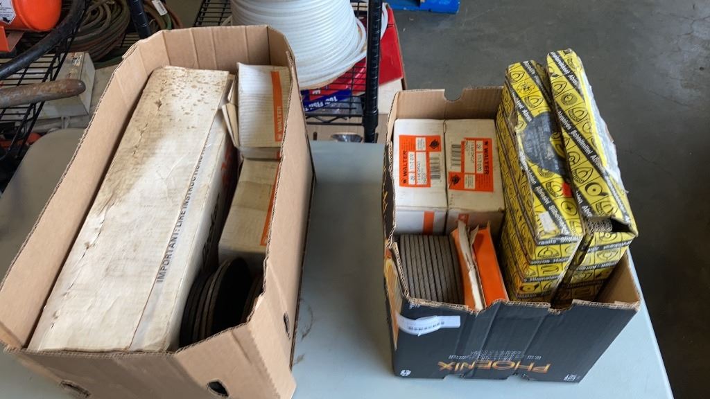 2 BOXES WITH ANGLE GRINDER AND GRINDING DISCS, CUTOFF DISCS