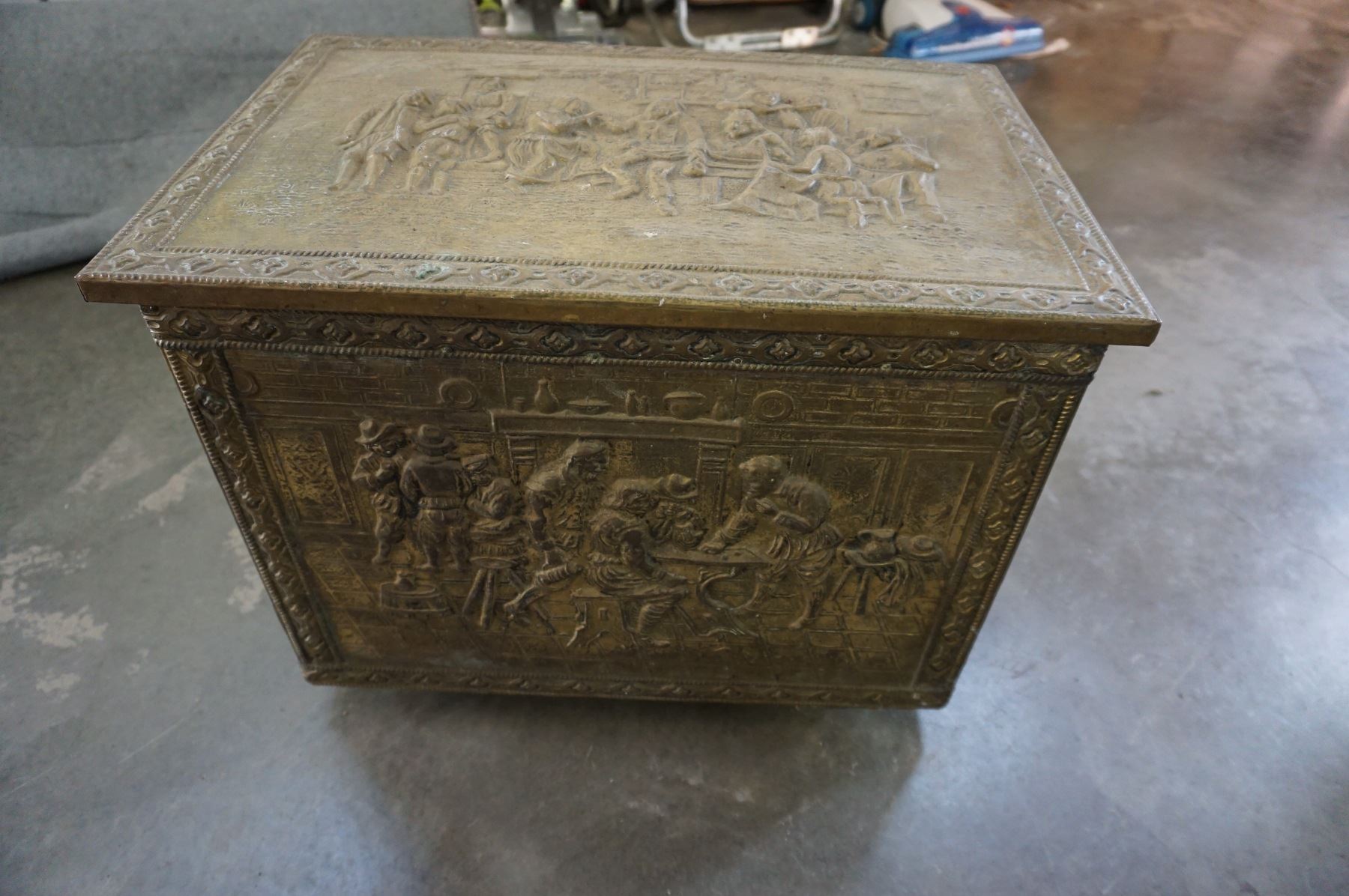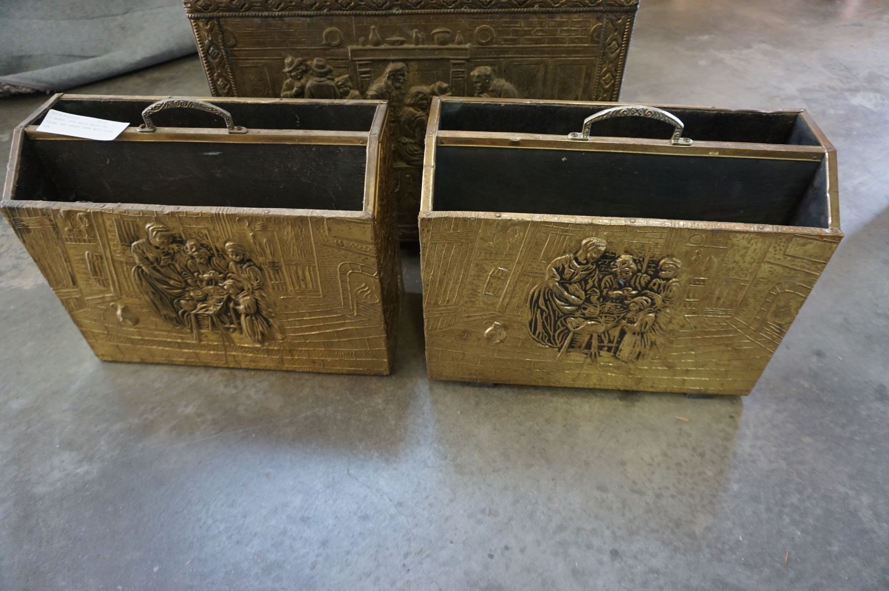 2 BRASS OVER WOOD MAGAZINE RACKS AND BRASS OVER WOOD FIRE BOX