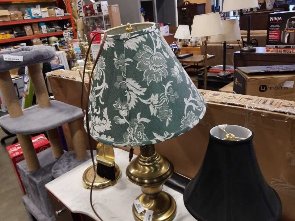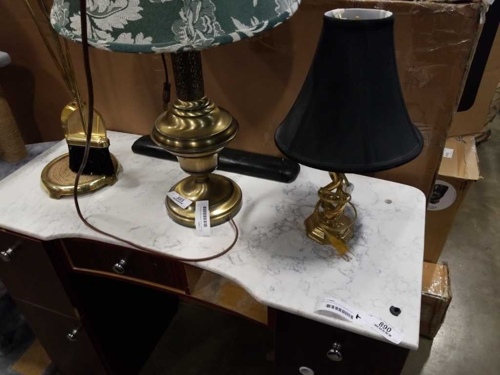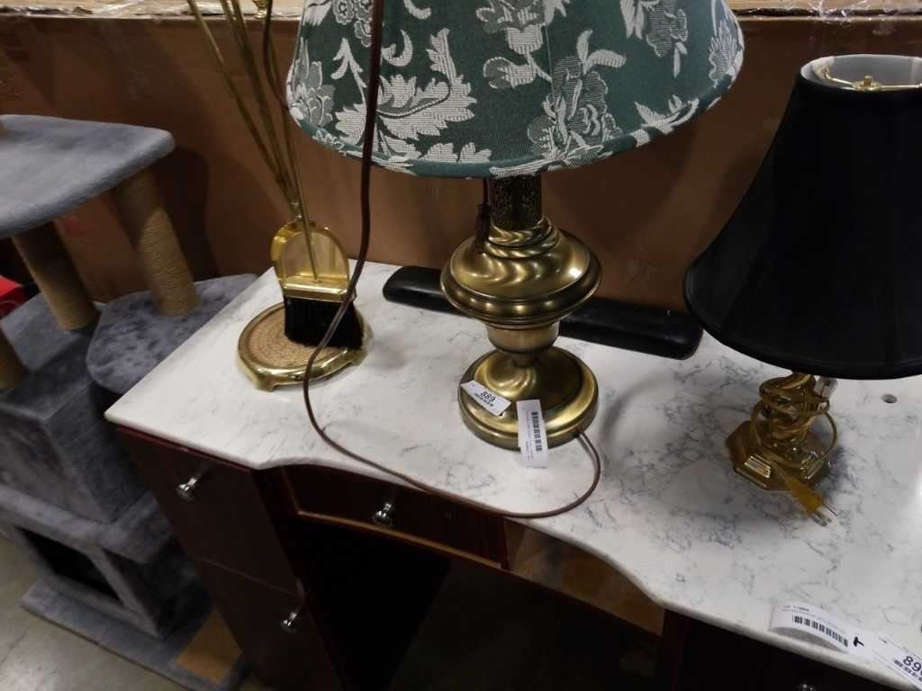 2 BRASS TABLE LAMPS AND FIREPLACE COMPANION SET