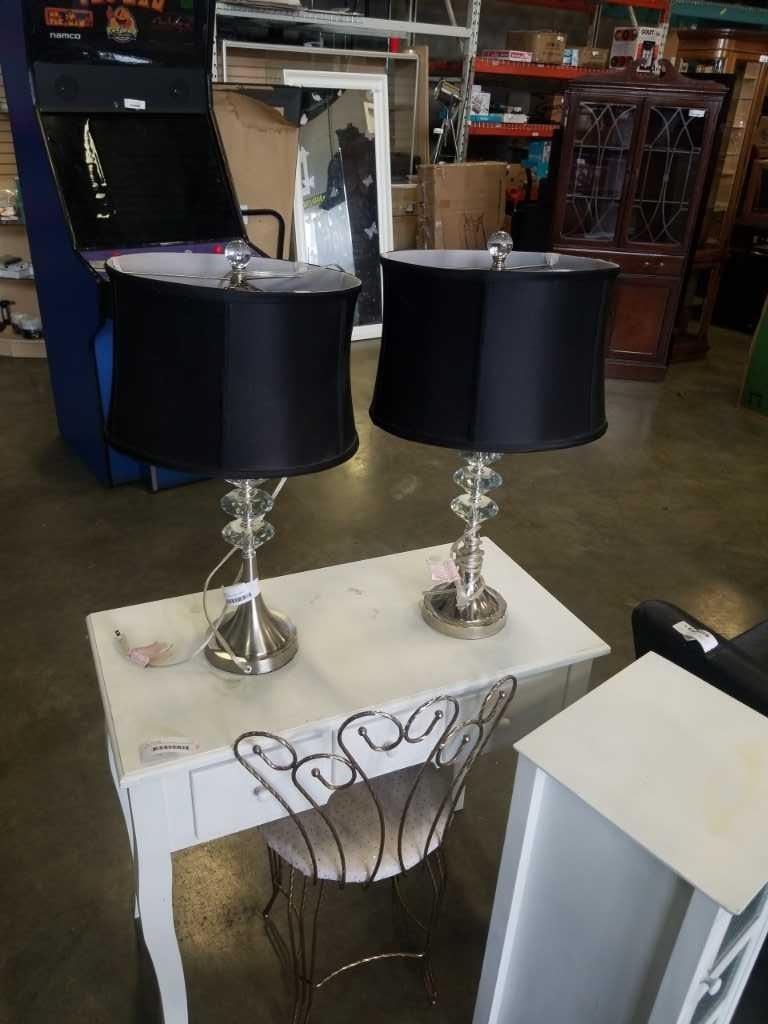 2 BRUSHED METAL TABLE LAMPS