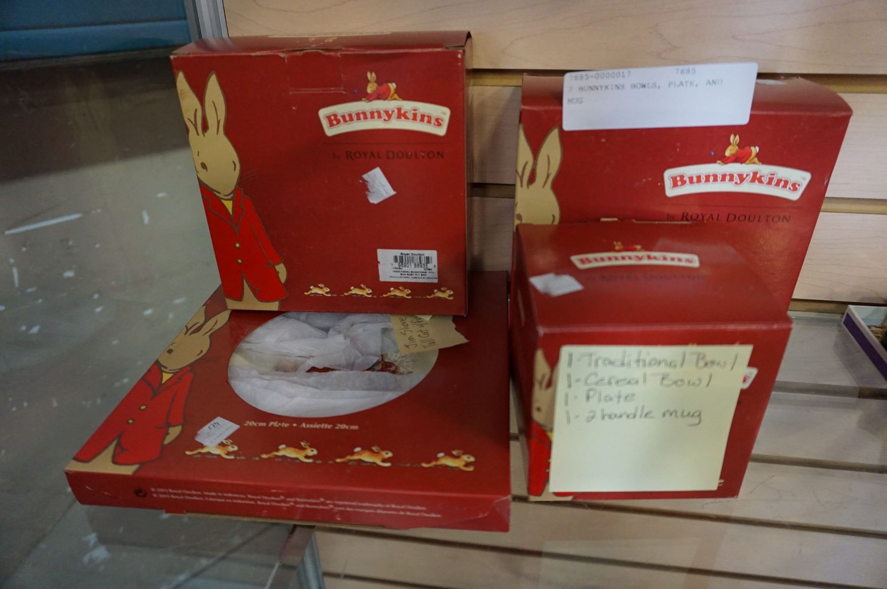 2 BUNNYKINS BOWLS, PLATE, AND MUG