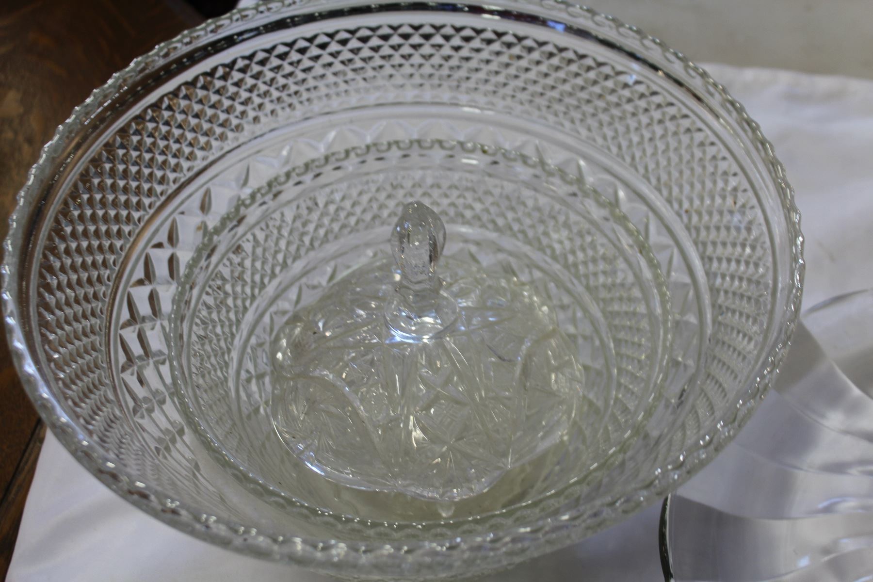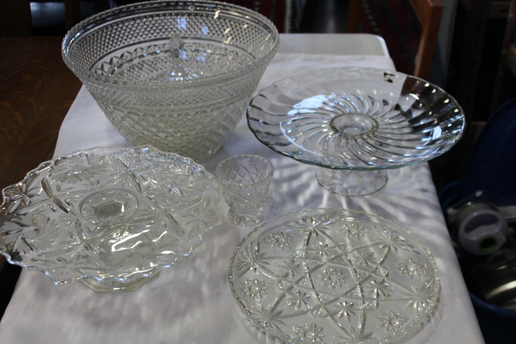 2 CAKE PLATTERS, 2 LARGE BOWLS AND 2 CRYSTAL PIECES
