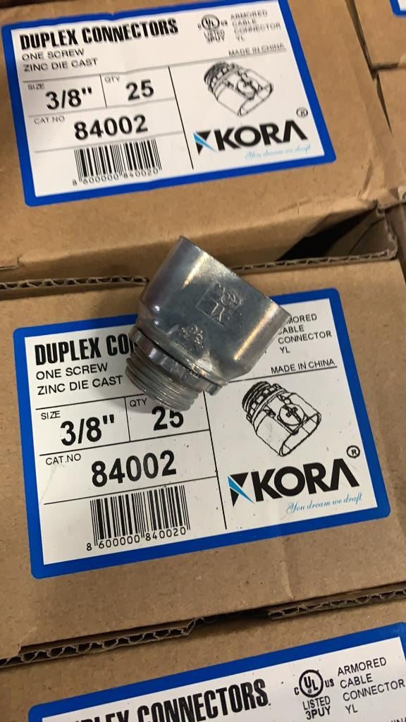 2 CASES OF 3/8 INCH ARMORED CABLE CONNECTORS