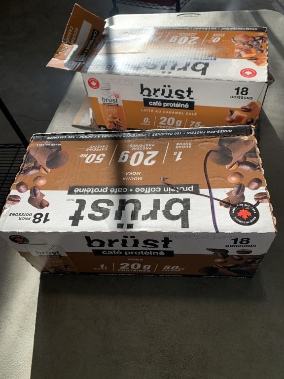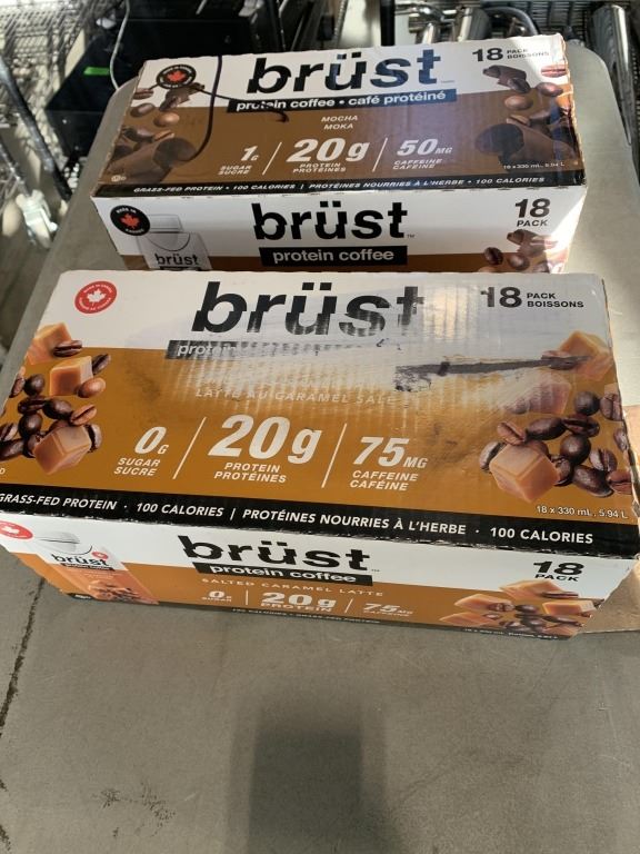 2 CASES OF BRUST PROTEIN DRINKS, MOCHA AND SALTED CARAMEL LATTE, EXP. 2027