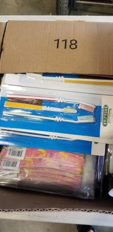 2 CASES OF NEW TOOTHBRUSH PACKS AND NAIL FILE PACKS
