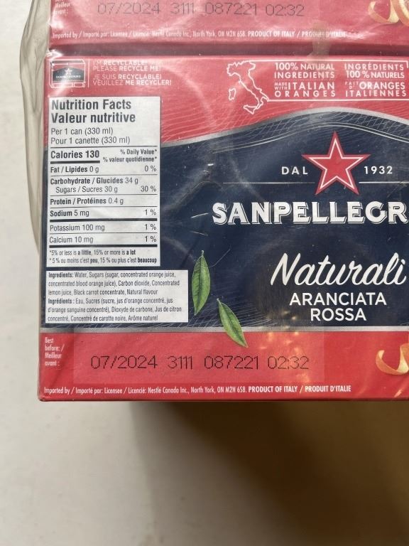 2 CASES OF SAN PELLEGRINO 48 CANS TOTAL - $28 PER CASE, BEST BEFORE 07/24