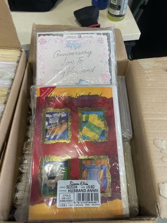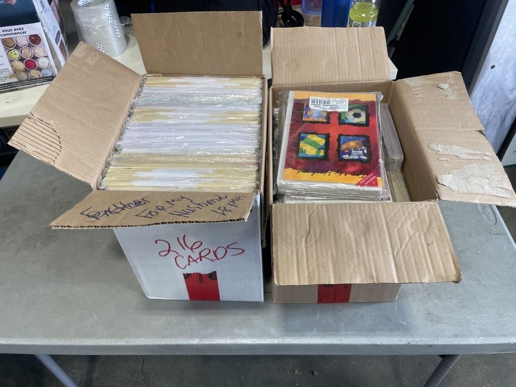 2 CASES OF VINTAGE GREETING CARDS, FROM ENGLAND, VARIOUS TYPES AND OCCASSIONS, APPROX 500 CARDS