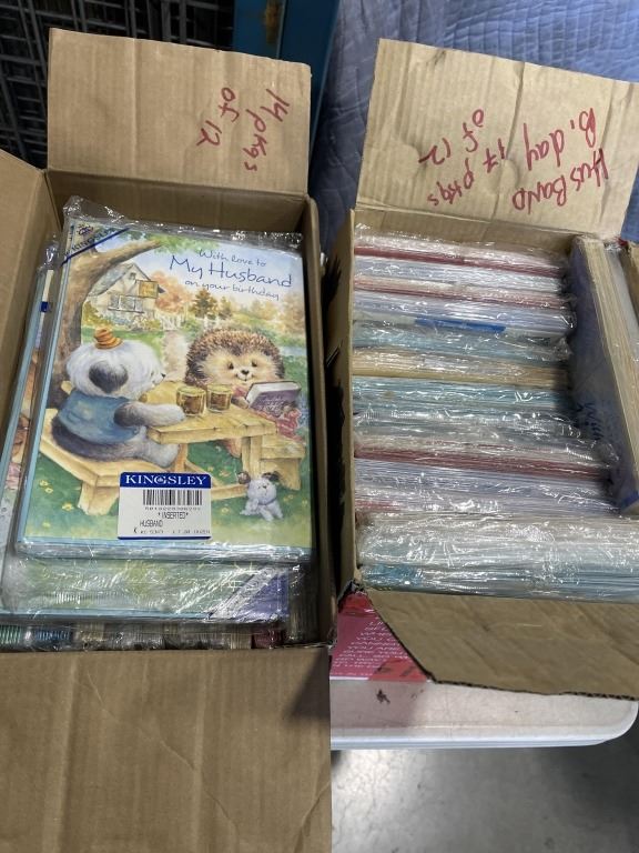 2 CASES OF VINTAGE GREETING CARDS, FROM ENGLAND, VARIOUS TYPES AND OCCASSIONS, APPROX 500 CARDS