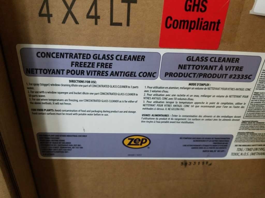 2 CASES OF ZEP CONCENTRATED GLASS CLEANER FREEZE FREE
