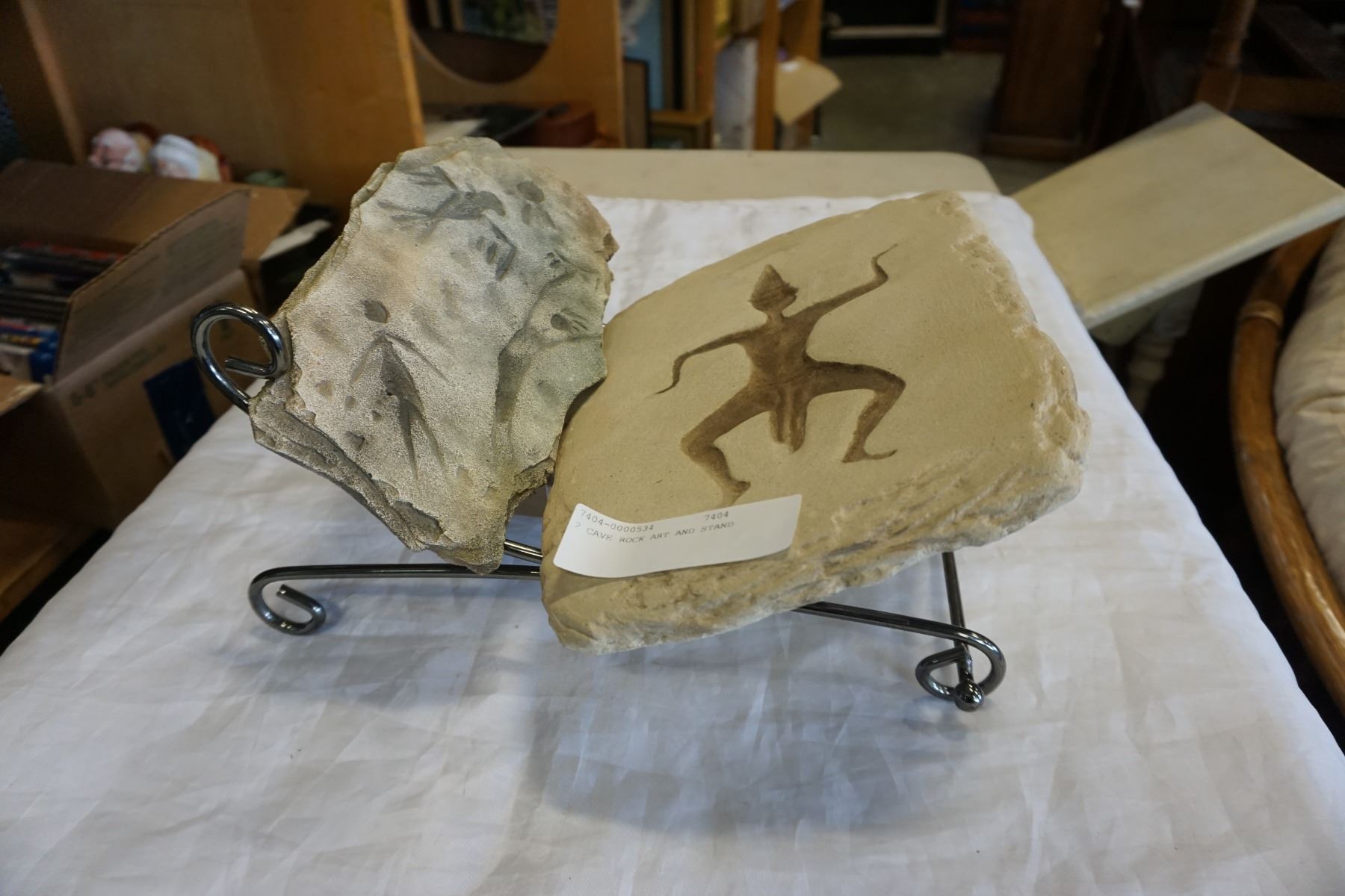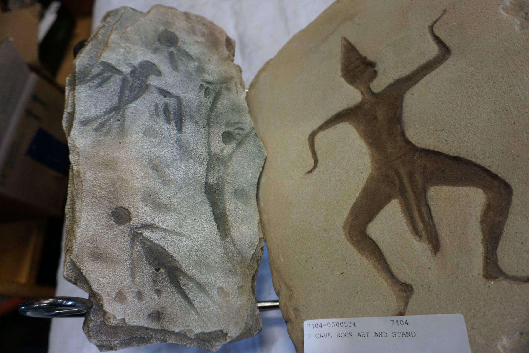 2 CAVE ROCK ART PIECES ON STAND