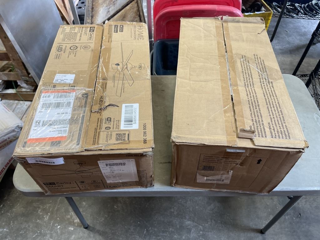 2 CEILING FANS WITH LIGHTS NEVER ASSEMBLED NO REMOTES