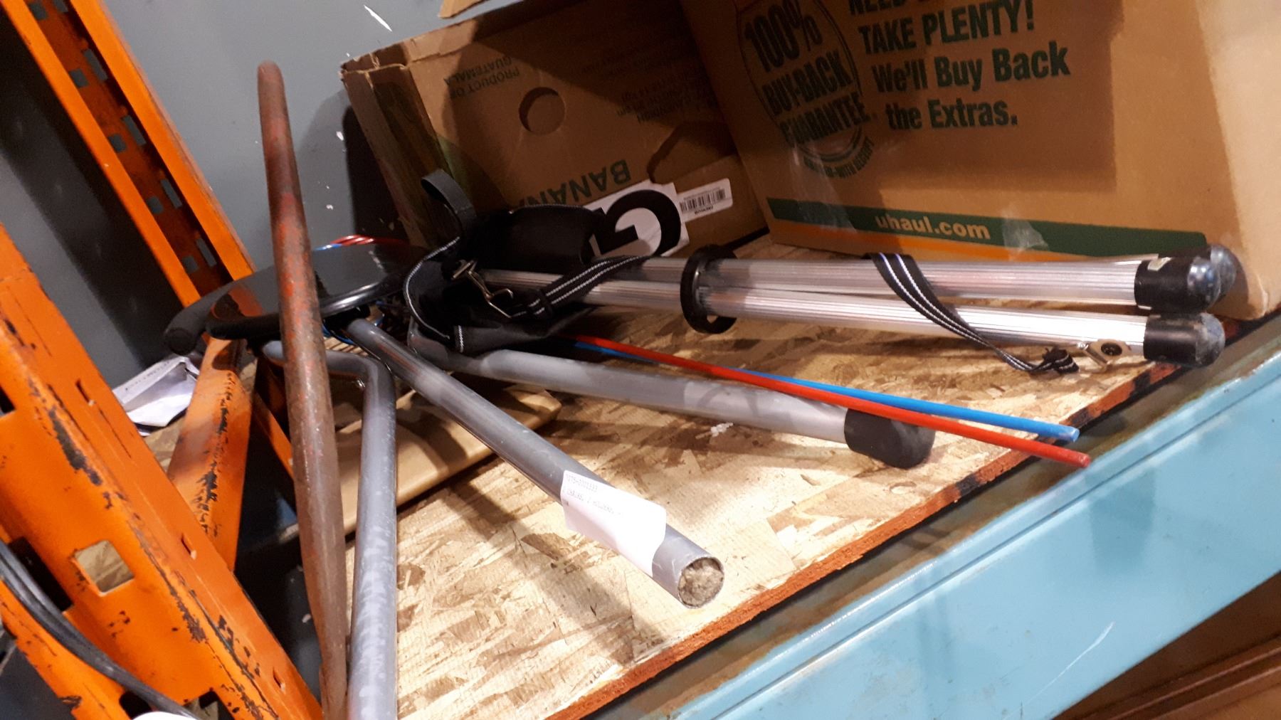 2 CHAIRS, 2 HOLDERS, AND HAND SAW