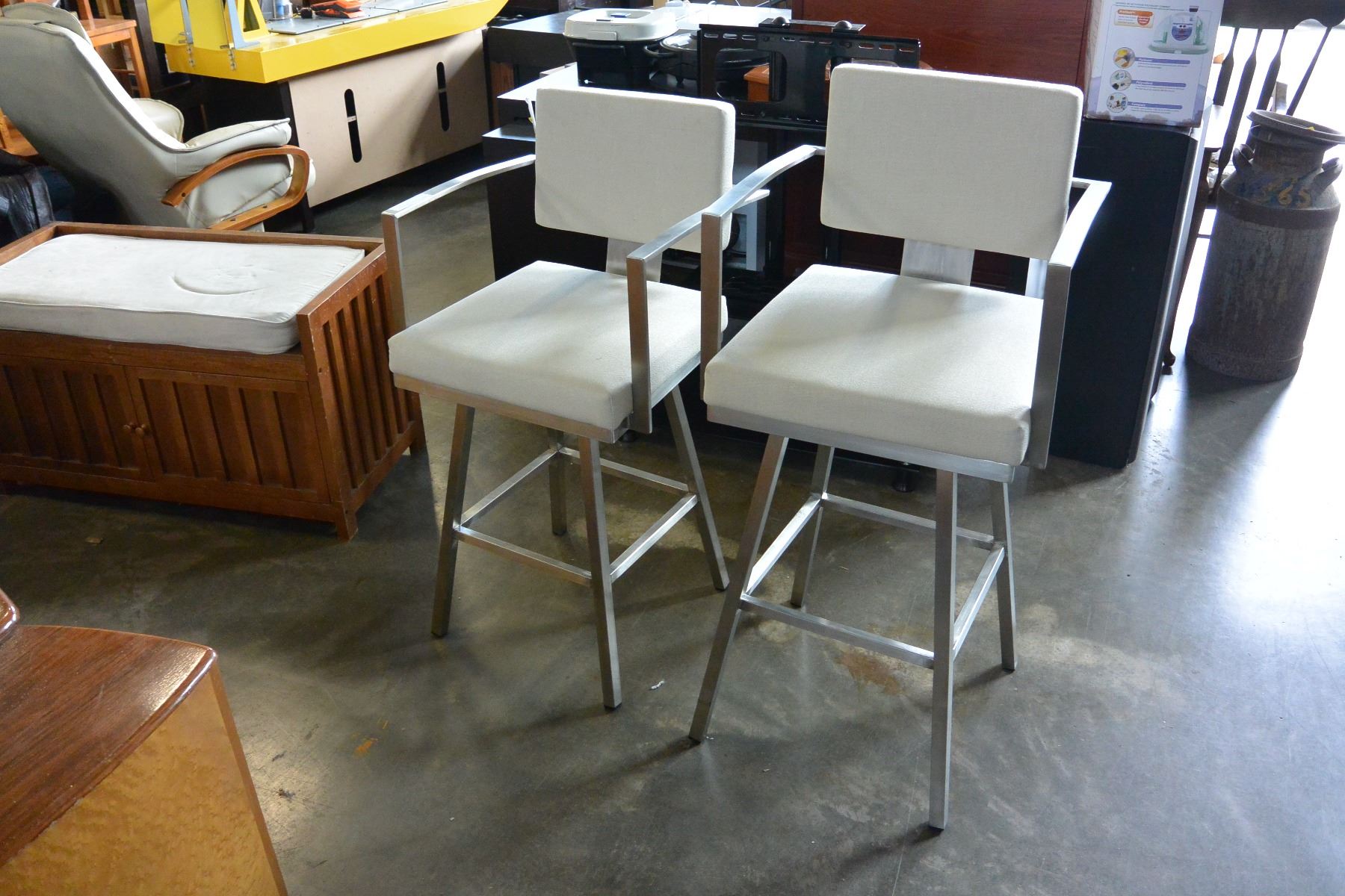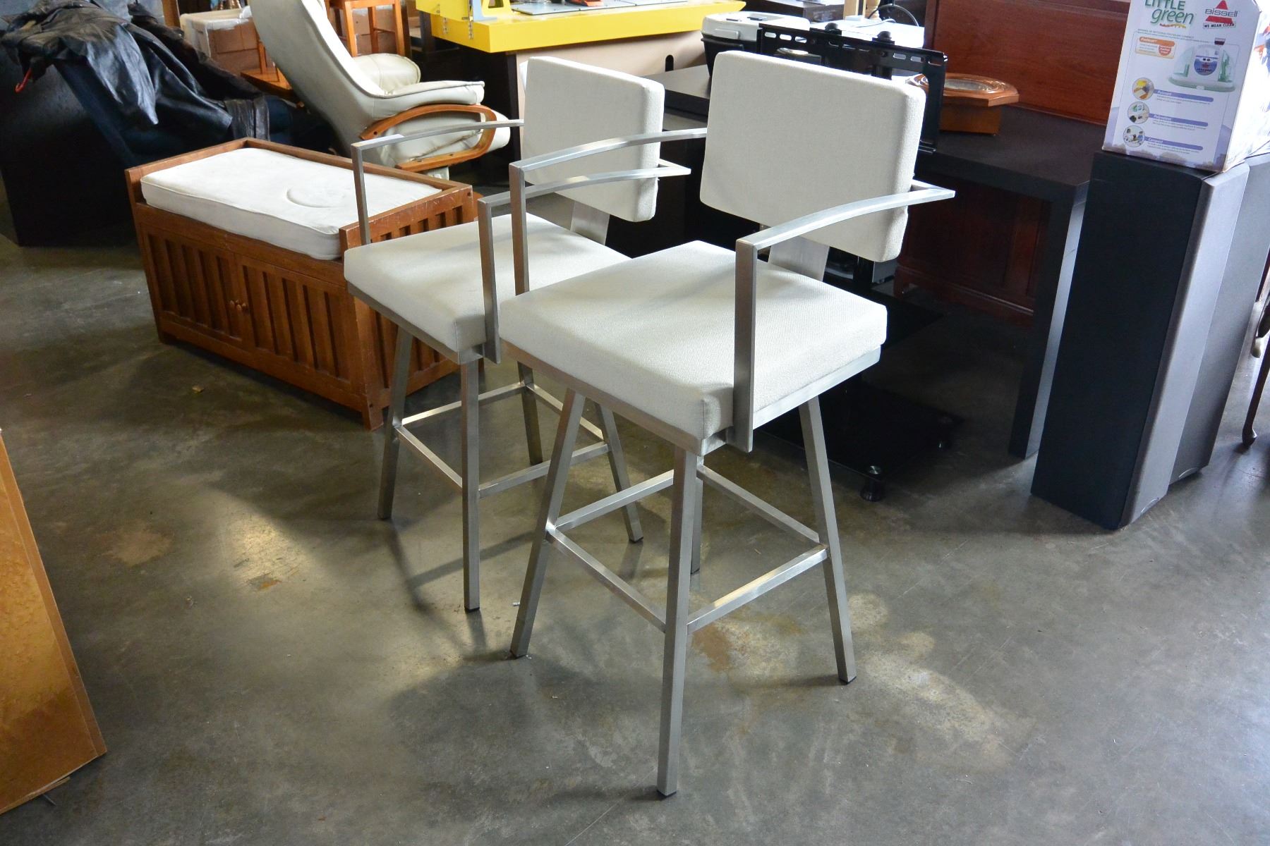 2 CHROME UPOLSTERED BAR STOOLS