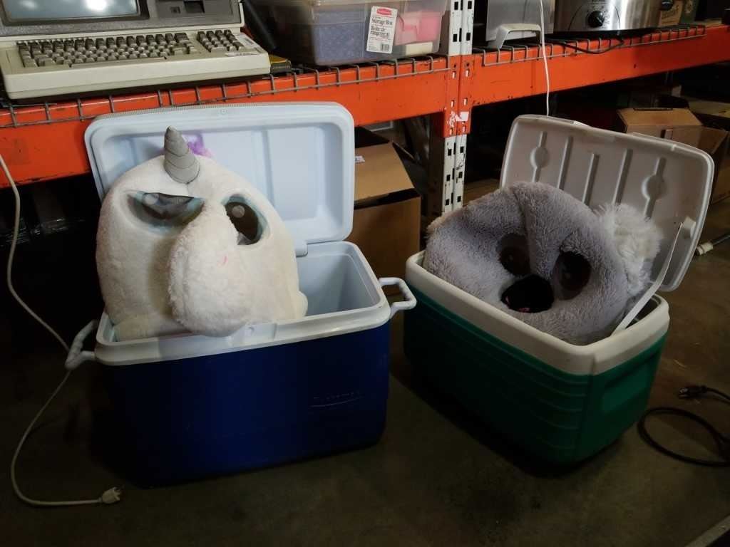 2 COOLERS, MASKIMALS UNICORN AND KOALA MASKS