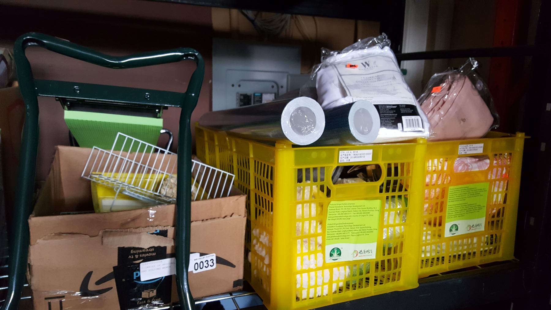 2 CRATES OF BEDDING, CUSHIONS, AND FOLDING BENCH