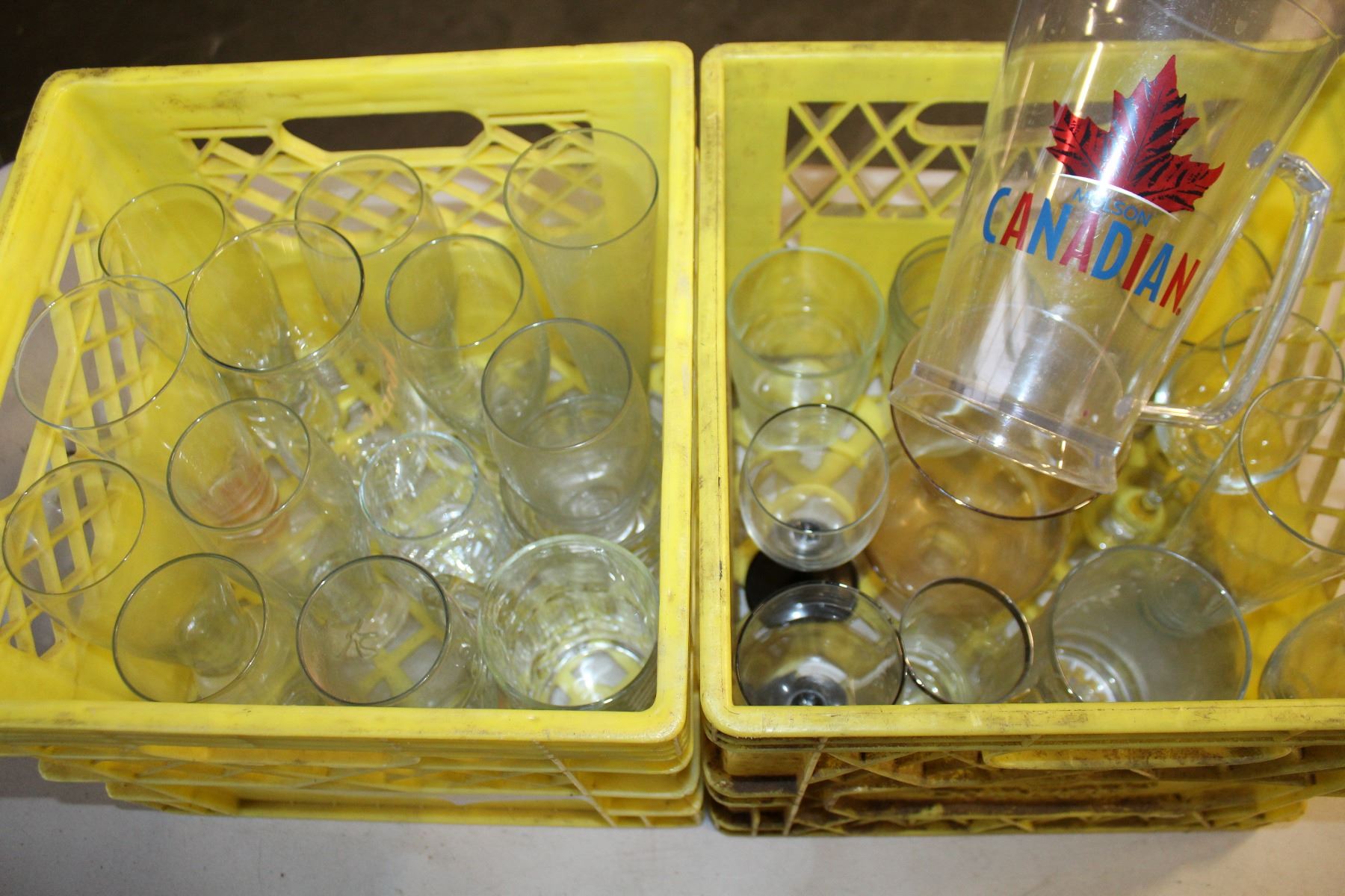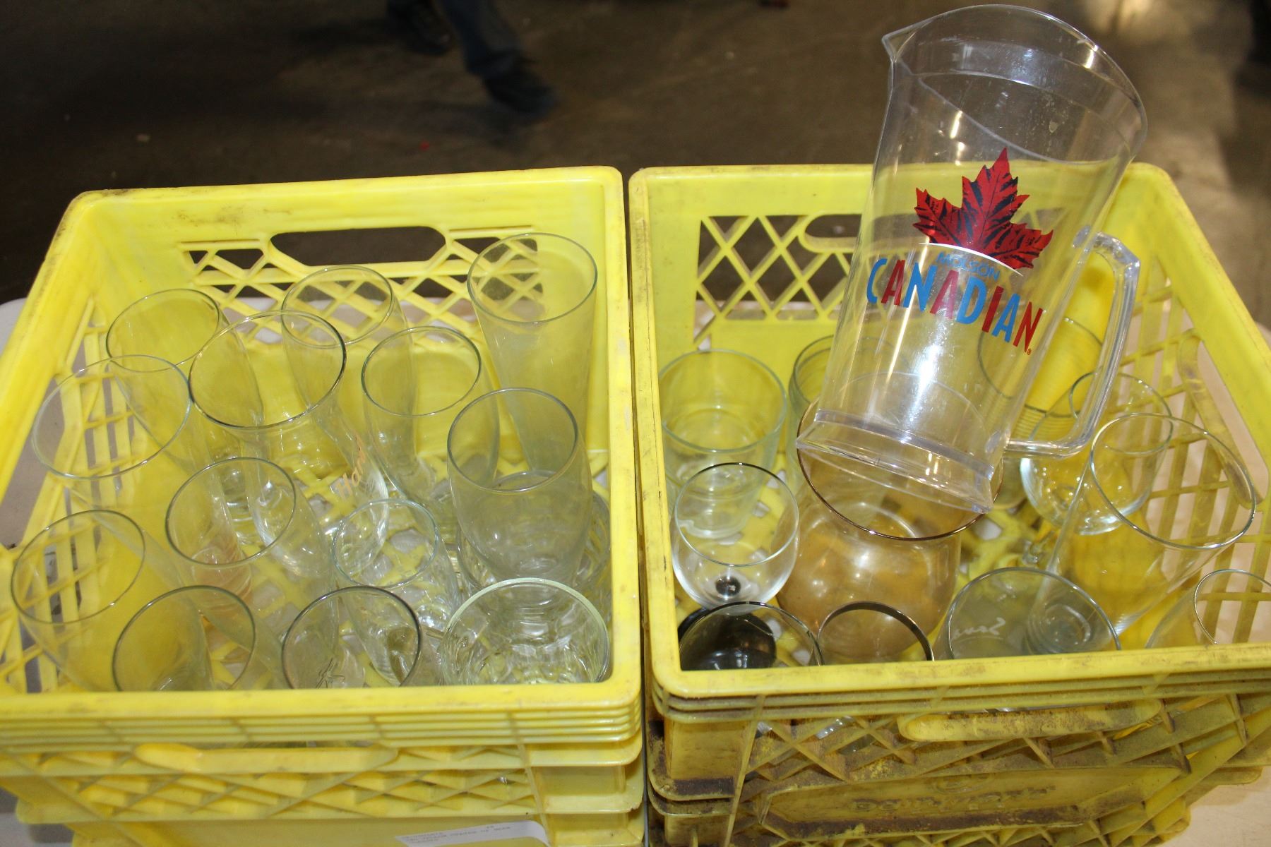 2 CRATES OF BEER GLASSES AND PITCHERS