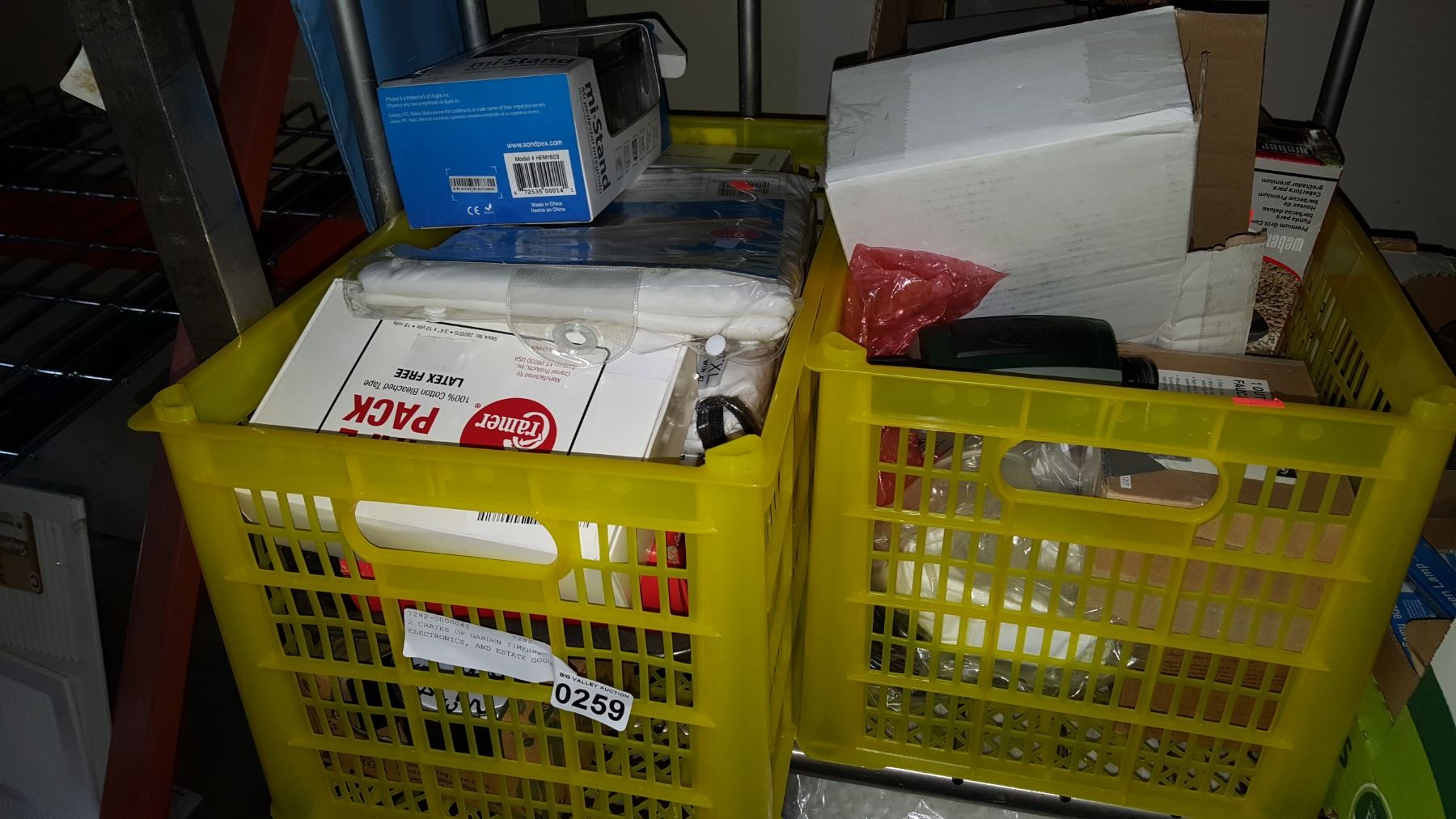 2 CRATES OF GARDEN TIMERS, ELECTRONICS, AND ESTATE GOODS