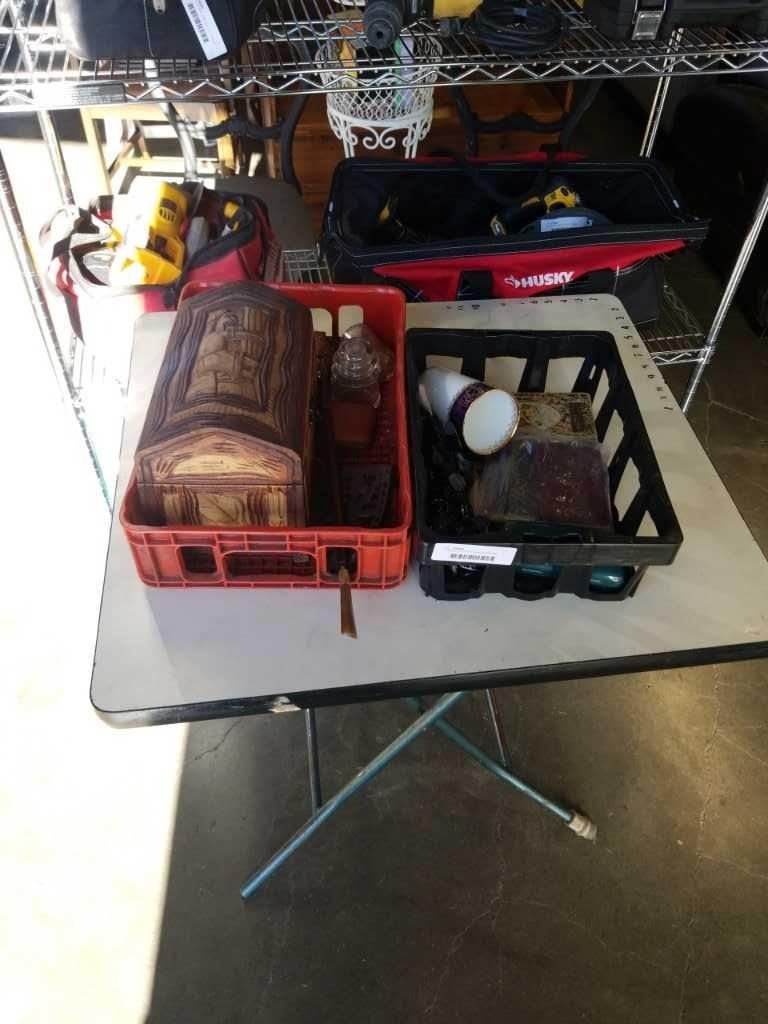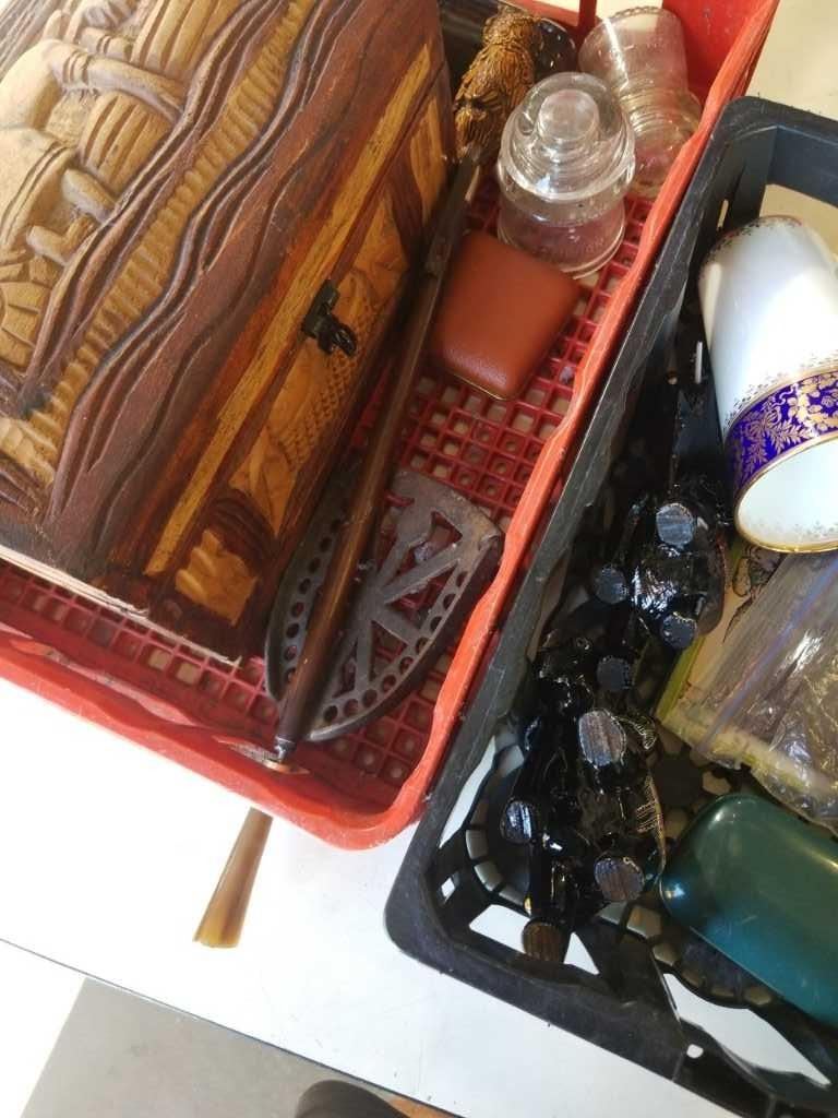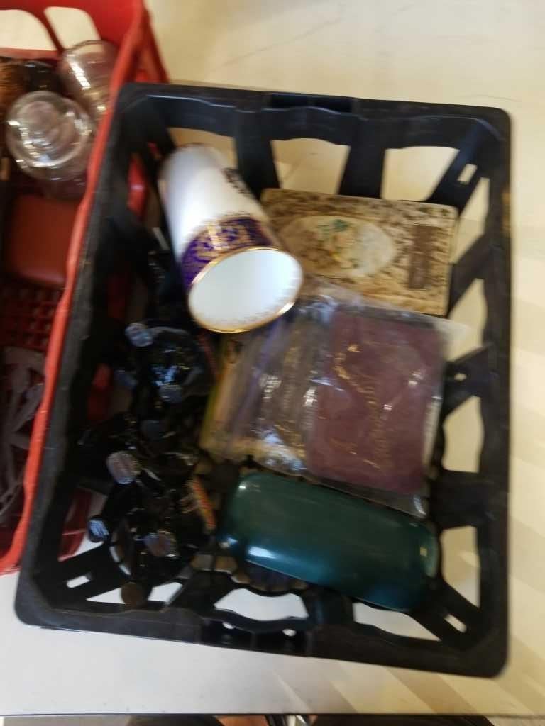 2 CRATES OF GLASS INSULATORS AND COLLECIBLES