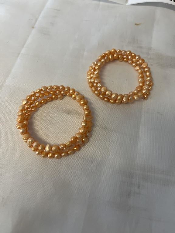 2 CULTURED FRESHWATER PEARL WIRE BRACELETS