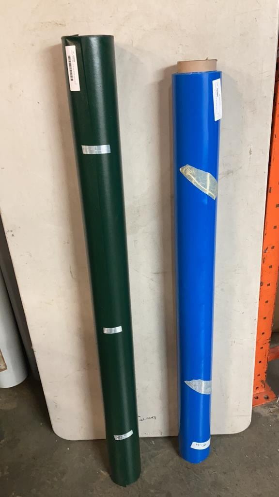 2 CUT OFF ROLLS OF 49" WIDE VINYL BLUE AND GREEN