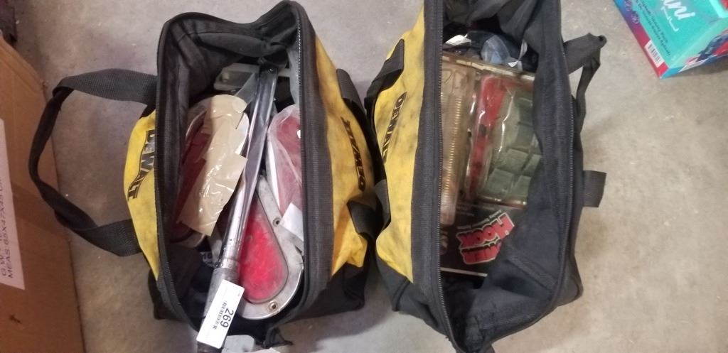 2 DEWALT TOOL BAGS WITH ASSORTED TOOLS AND SHOP CONTENTS