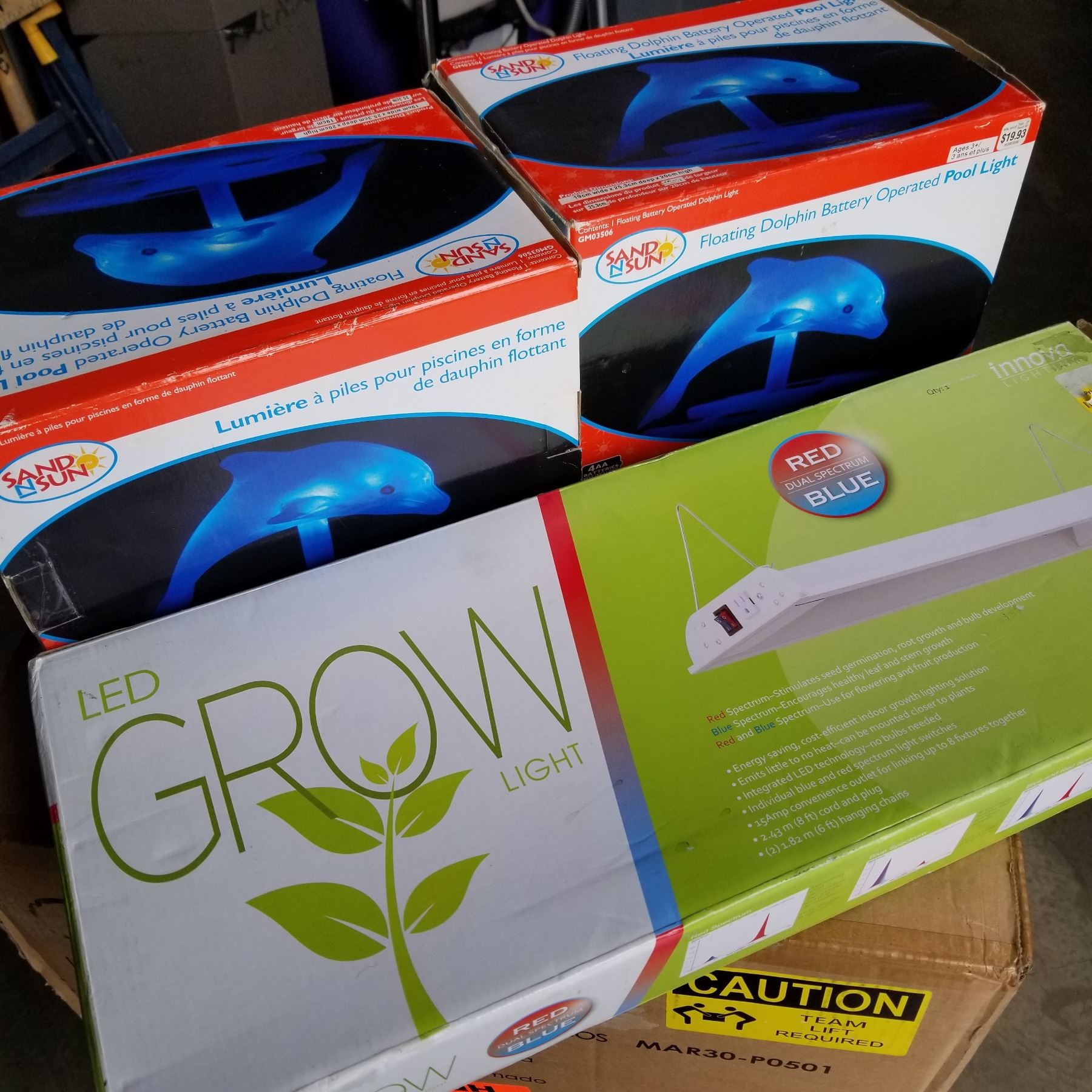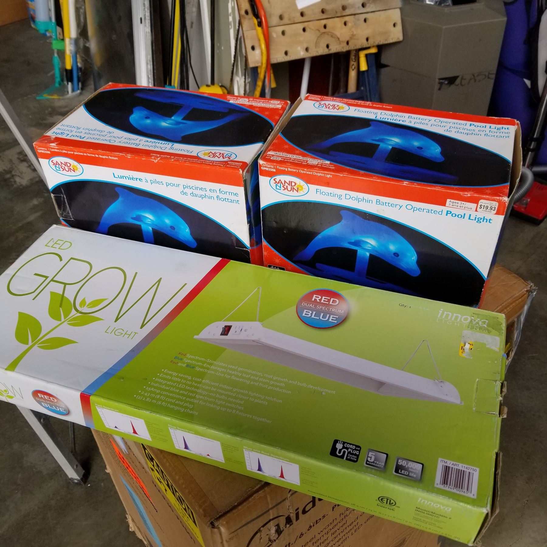 2 DOLPHIN BATTERY OPERATED POOL LIGHTS AND LED GROW LIGHT