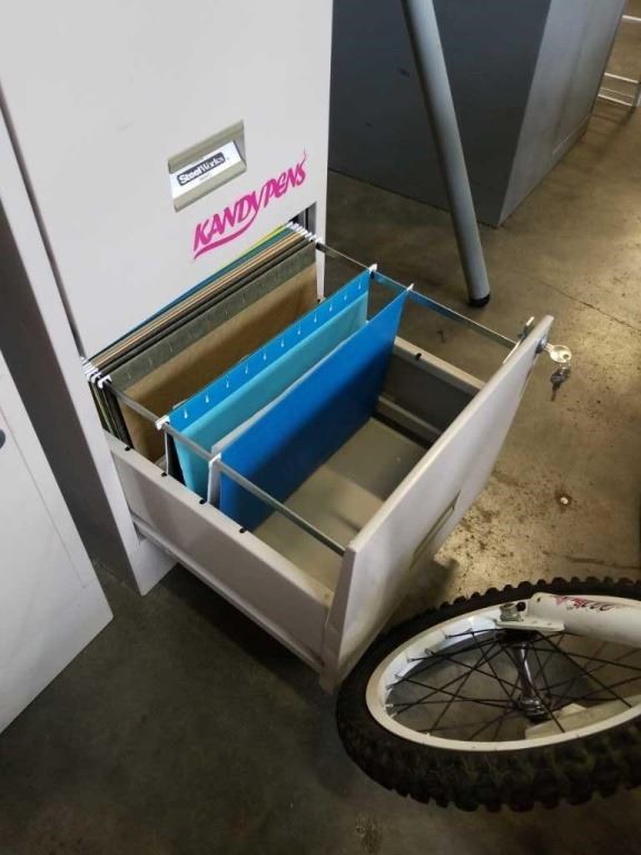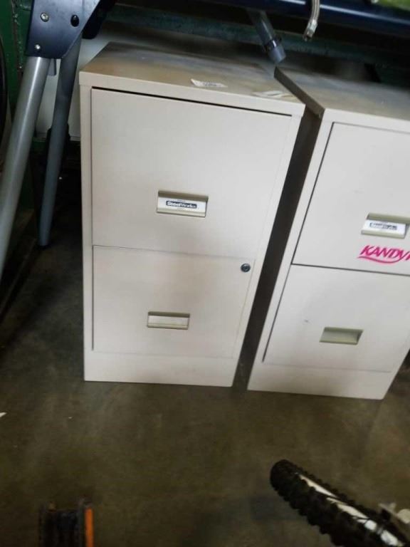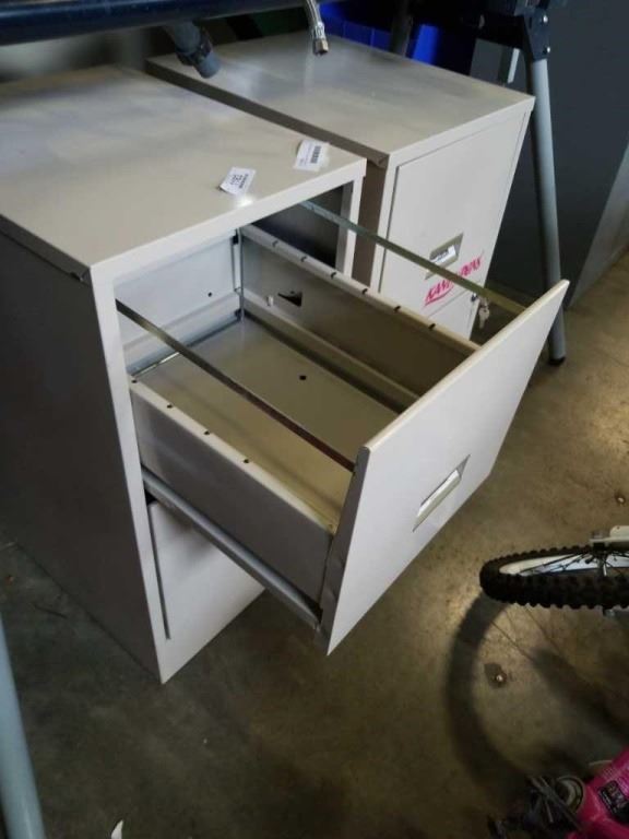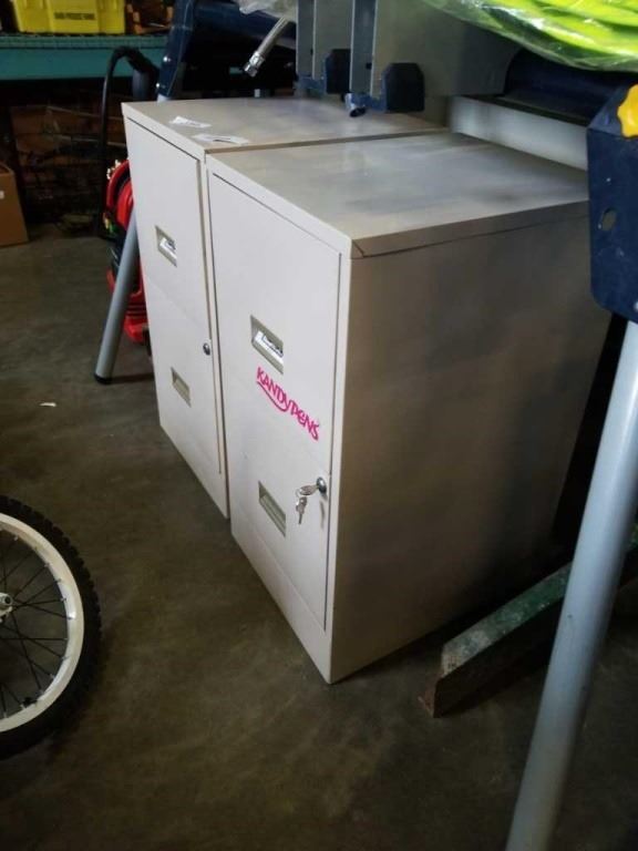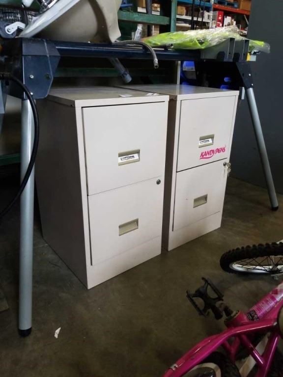 2 DOUBLE DRAWER FILE CABINETS WITH ONE KEY, KEYED ALIKE
