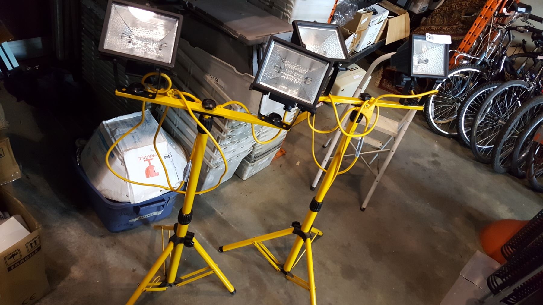 2 DOUBLE SHOP LIGHTS W/ TRIPOD