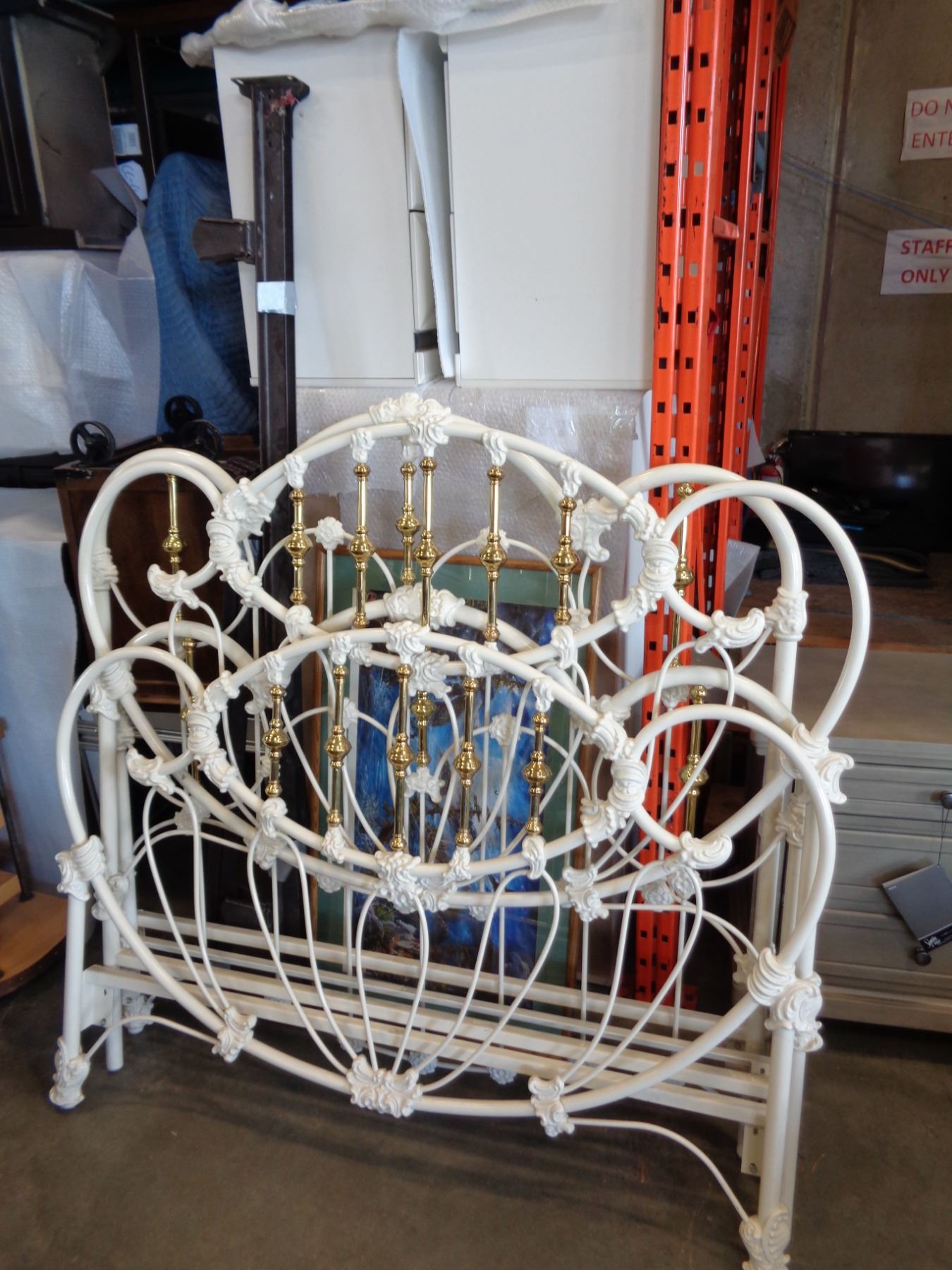 2 DOUBLE SIZE WHITE METAL HEADBOARD AND FOOTBOARDS AND 1 SET OF RAILS