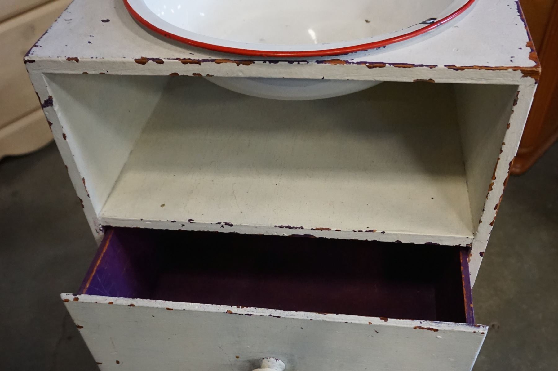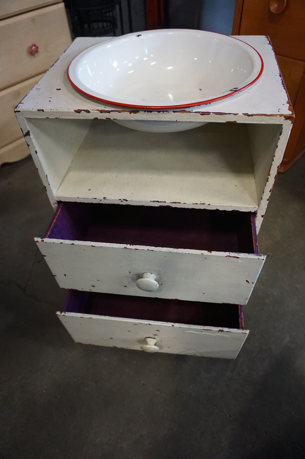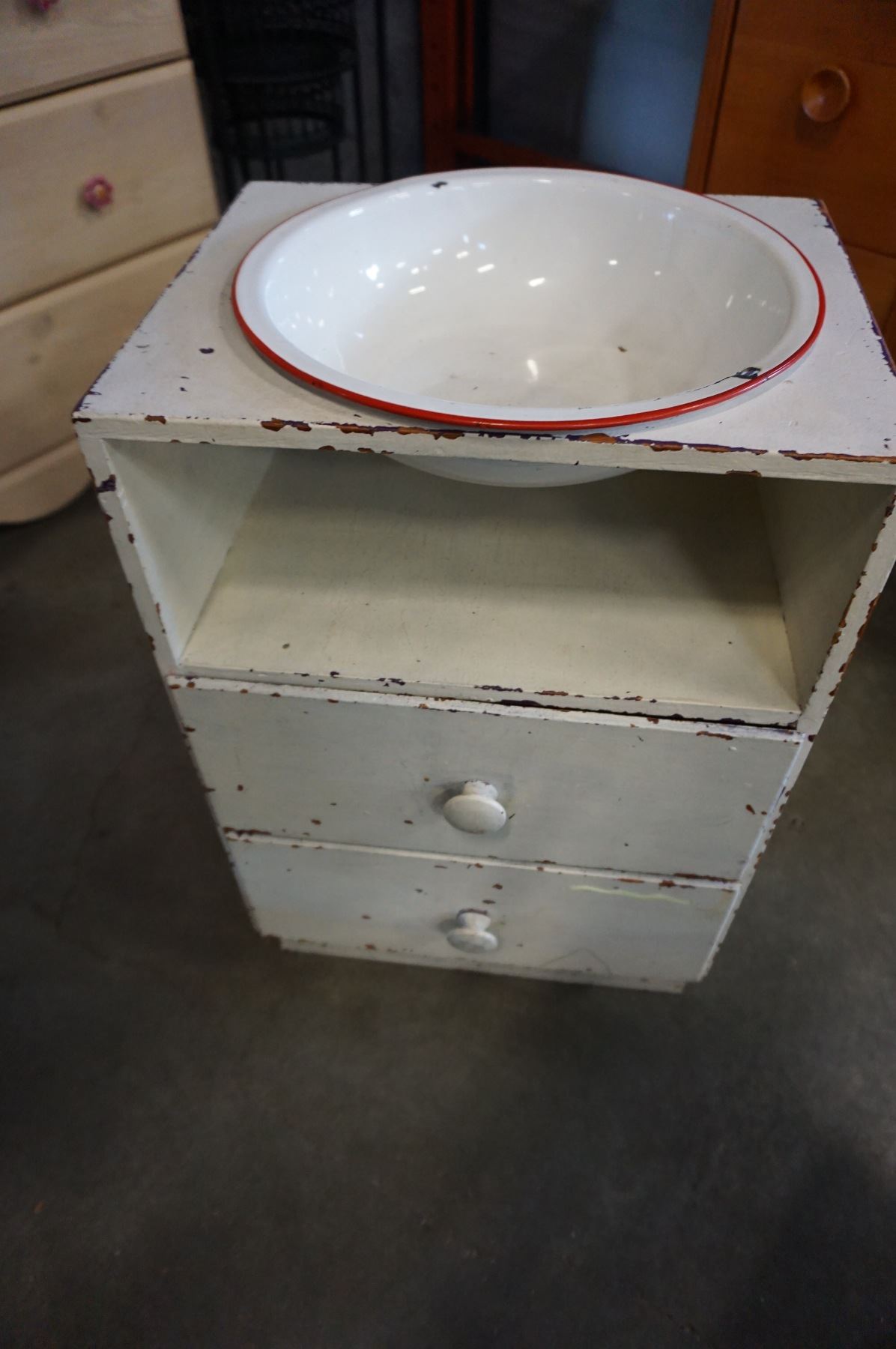 2 DRAWER WASH STAND WITH ENAMEL BOWL
