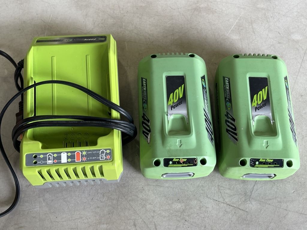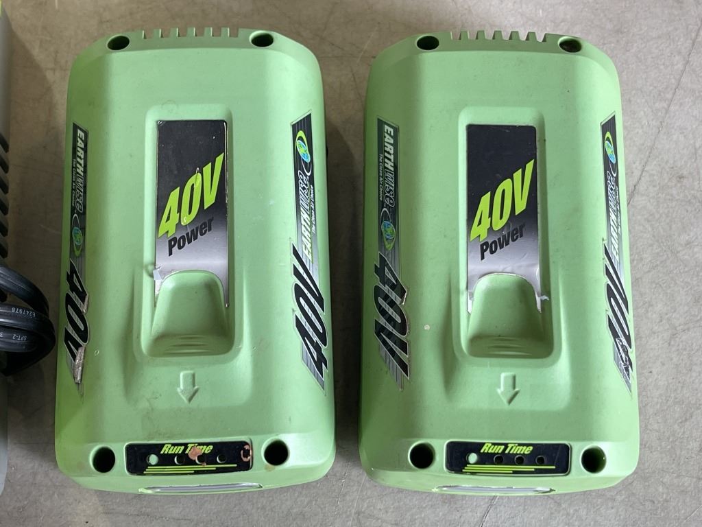 2 EARTHWISE 40V BATTERIES W/ CHARGER