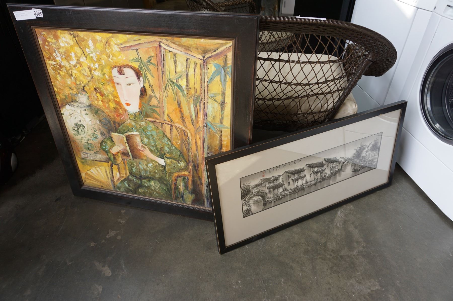 2 EASTERN PICTURES - 1 OIL ON CANVAS, 1 SKETCH PRINT