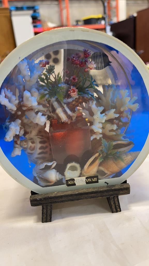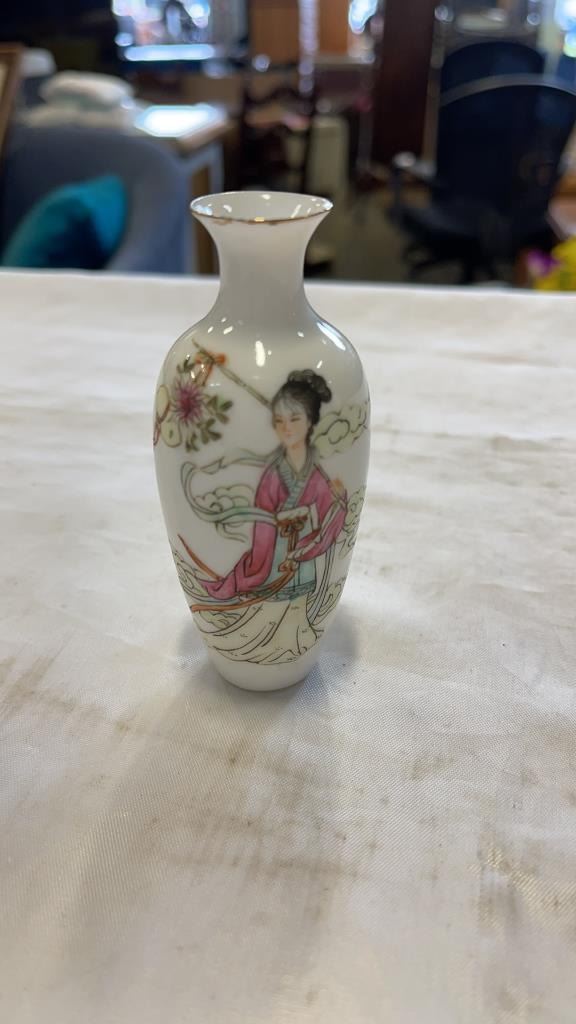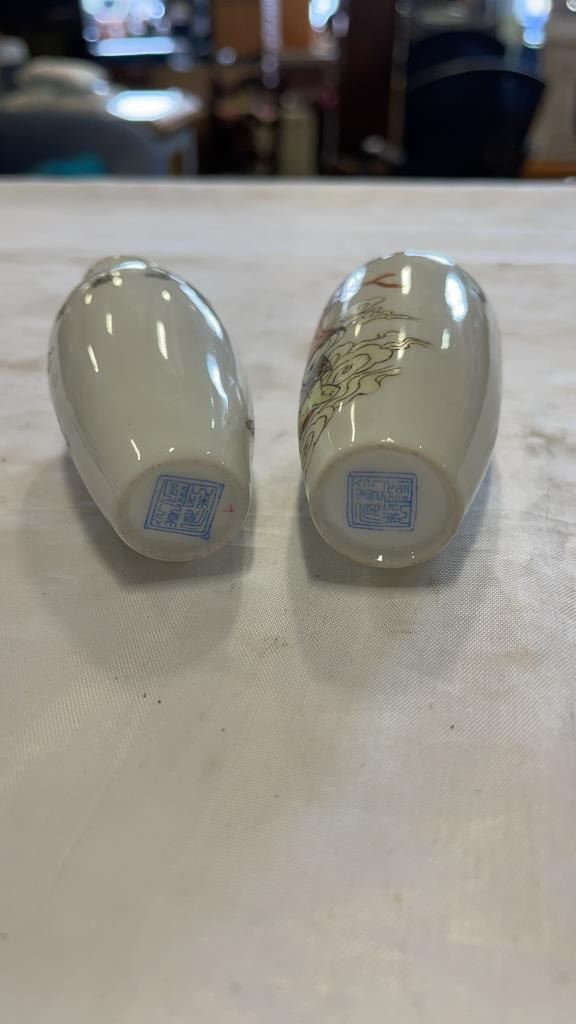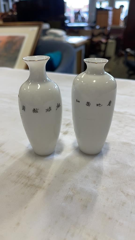 2 EGG SHELL HAND PAINTED PORCELAIN VASES AND CORAL LAMP
