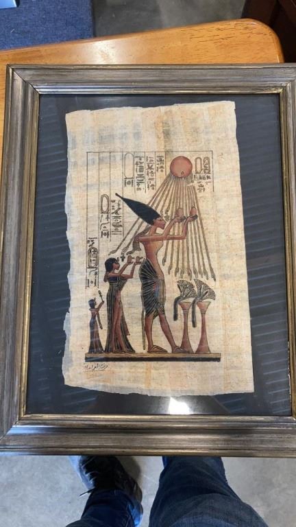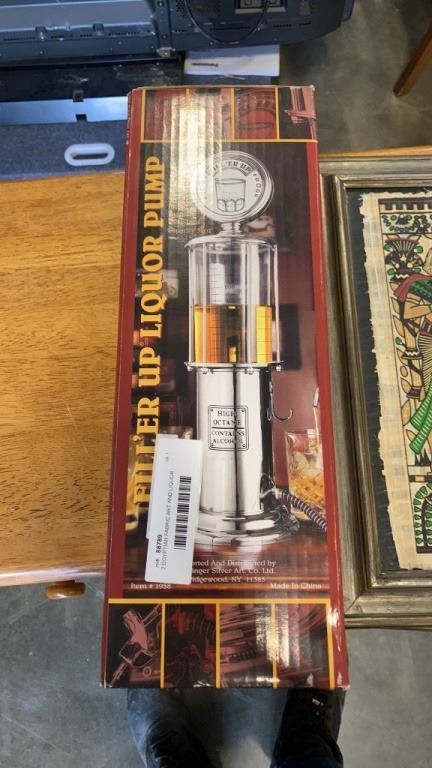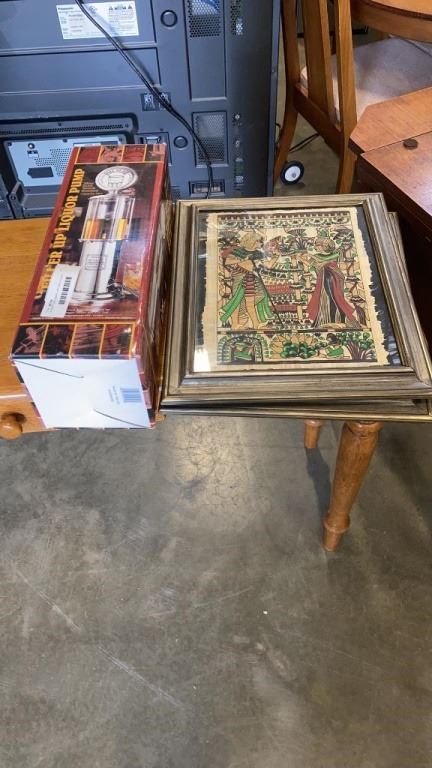 2 EGYPTIAN FABRIC ART AND LIQUOR DISPENSER