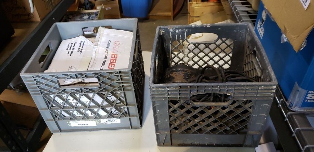 2 ELECTRIC MOTORS AND CRATE OF DRYWALL SCREWS