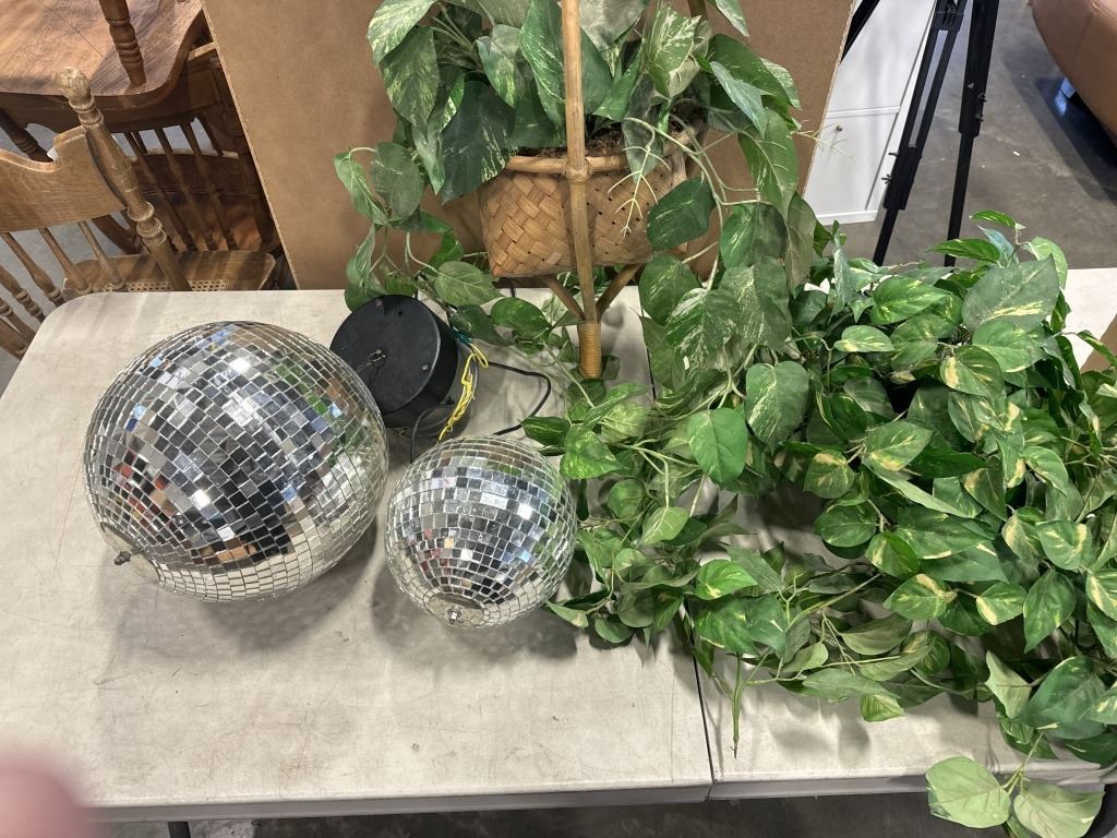2 FAKE PLANTS AND 2 DISCO BALLS