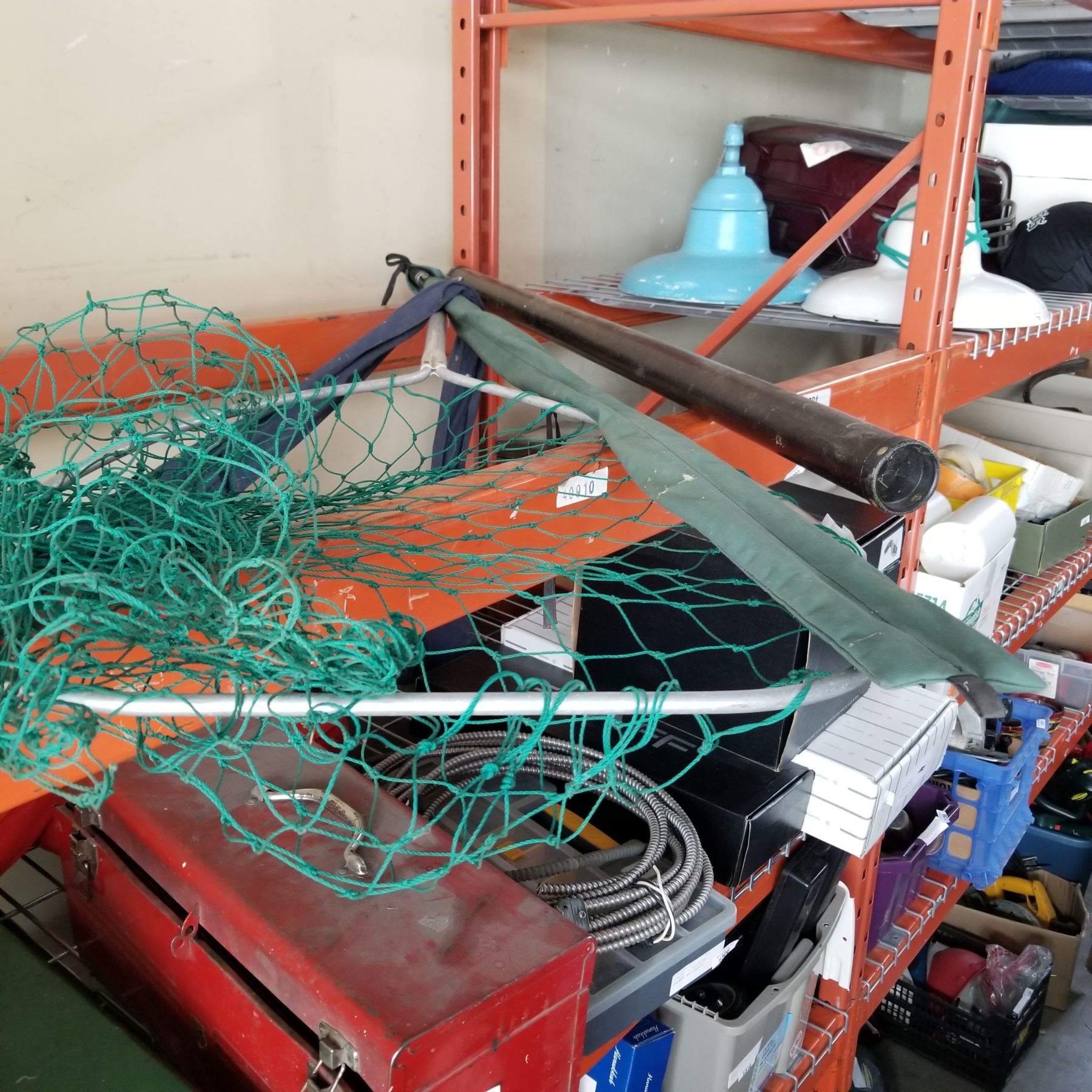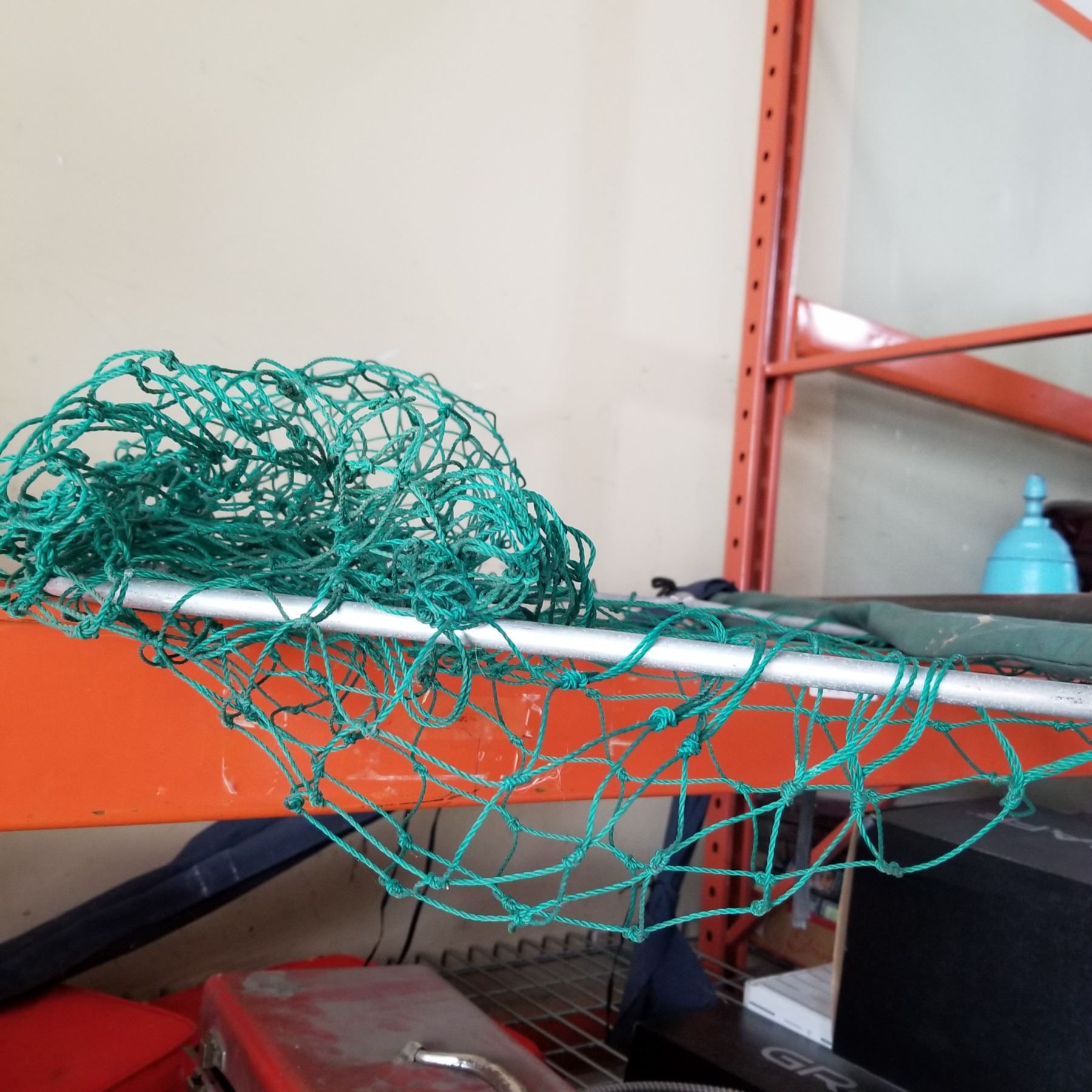 2 FISHING RODS, NET, AND FLOAT SEAT PADS