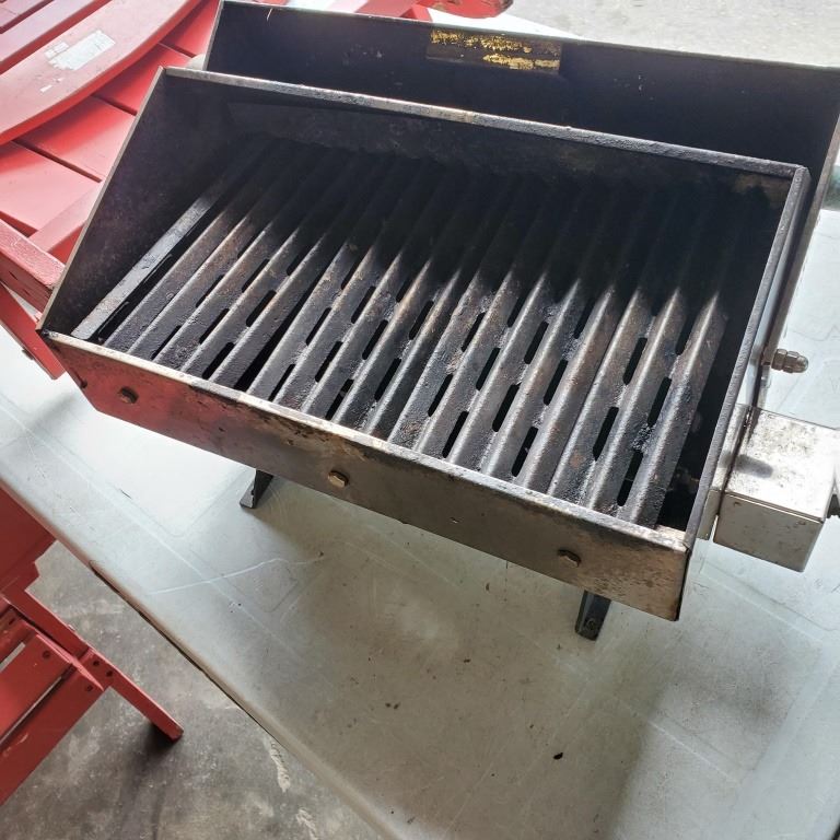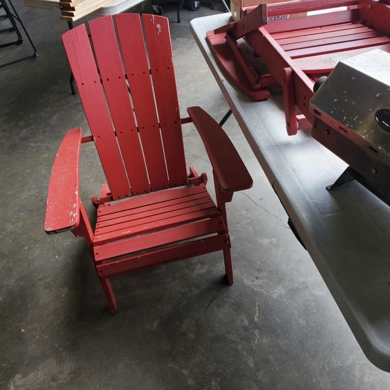 2 FOLDING WOOD PATIO ARM CHAIRS AND SEA B CUE PROPANE PORTABLE GRILL