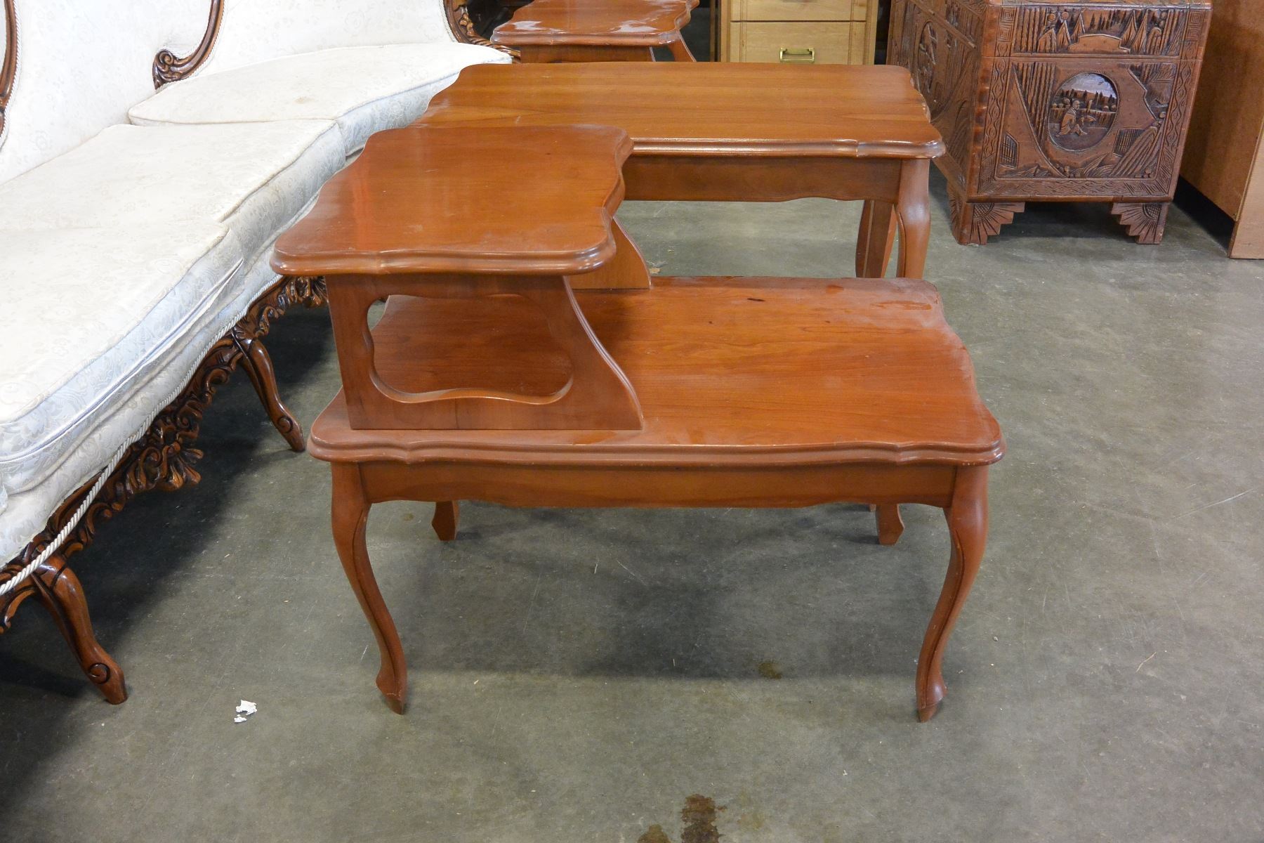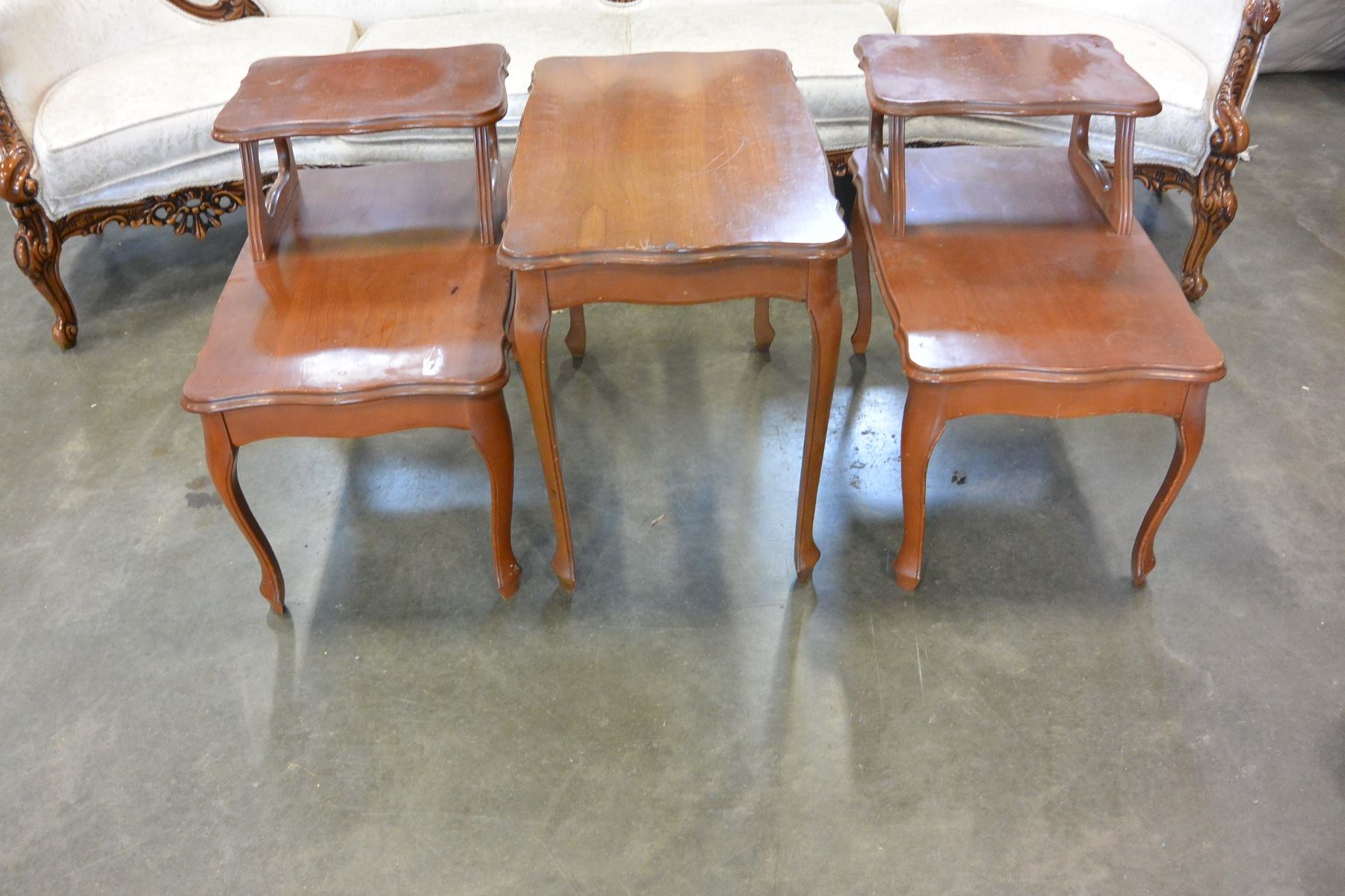 2 FRENCH PROVINCIAL STEP ENDTABLES AND FRENCH PROVINCIAL ENDTABLE