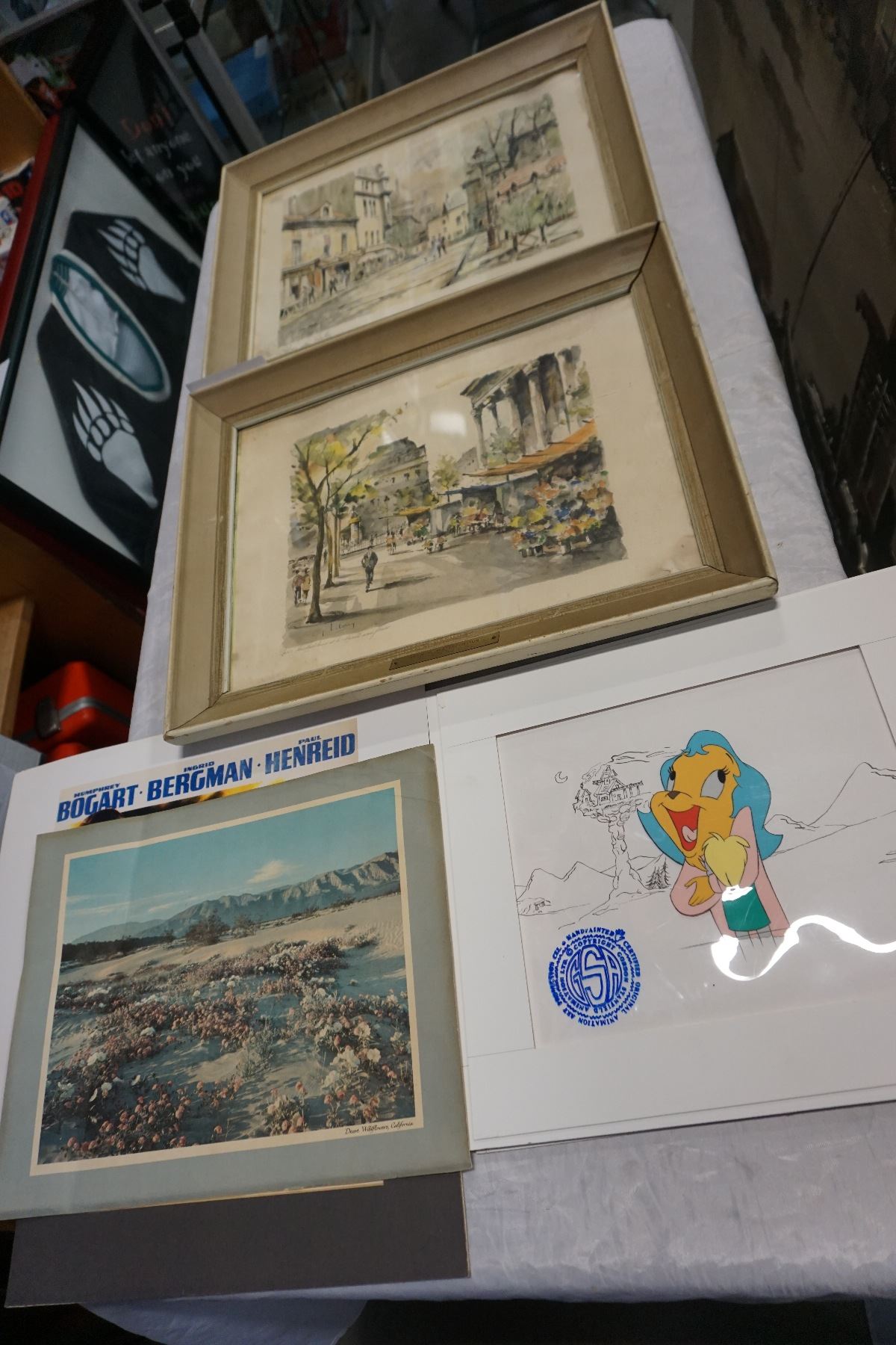 2 FRENCH WATER COLOURS AND LOT OF SMALL PRINTS