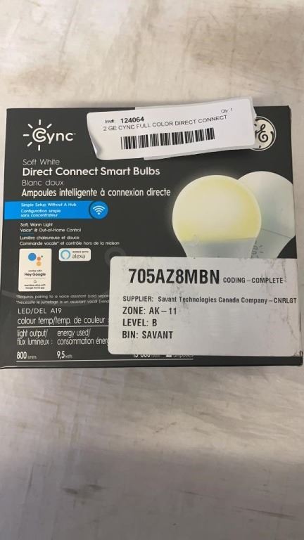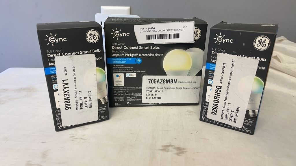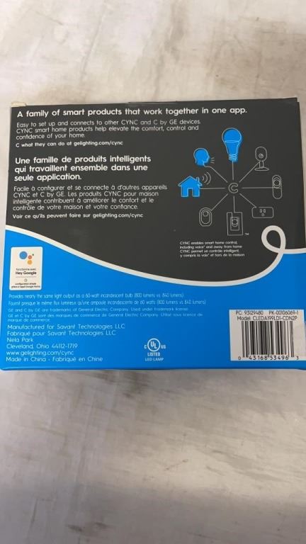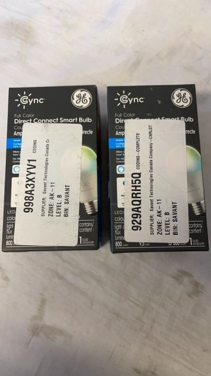 2 GE CYNC FULL COLOR DIRECT CONNECT SMART BULBS AND 2 GE CYNC SOFT WHITE DIRECT CONNECT SMART BULBS - TESTED WORKING - RETAIL $58