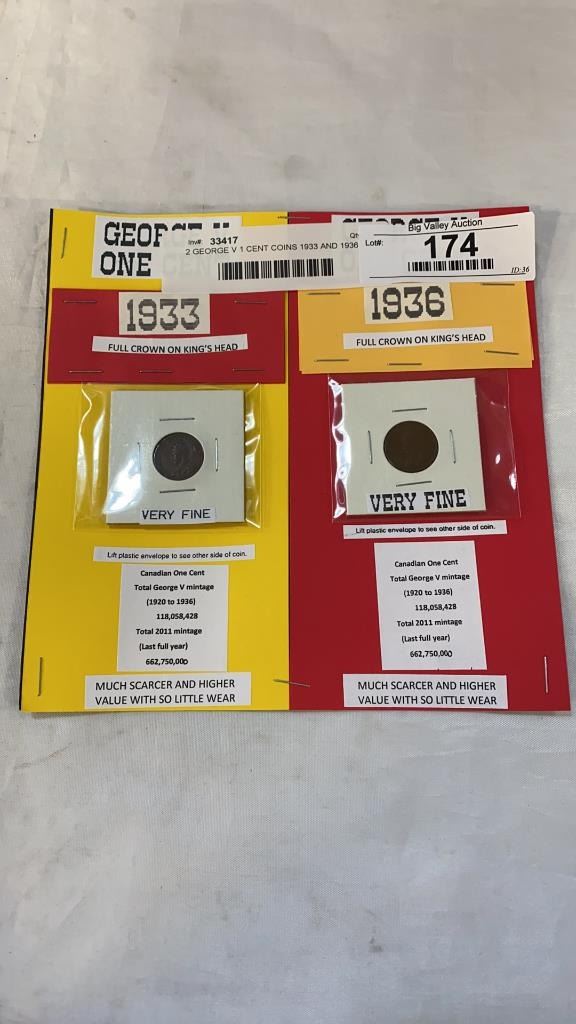 2 GEORGE V 1 CENT COINS 1933 AND 1936