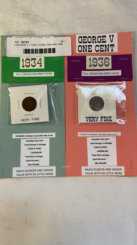 2 GEORGE V 1 CENT COINS 1934 AND 1936