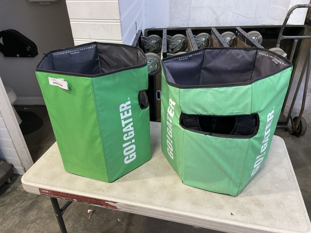 2 GO GATER BINS W/ BACKPACK AND HELMETS